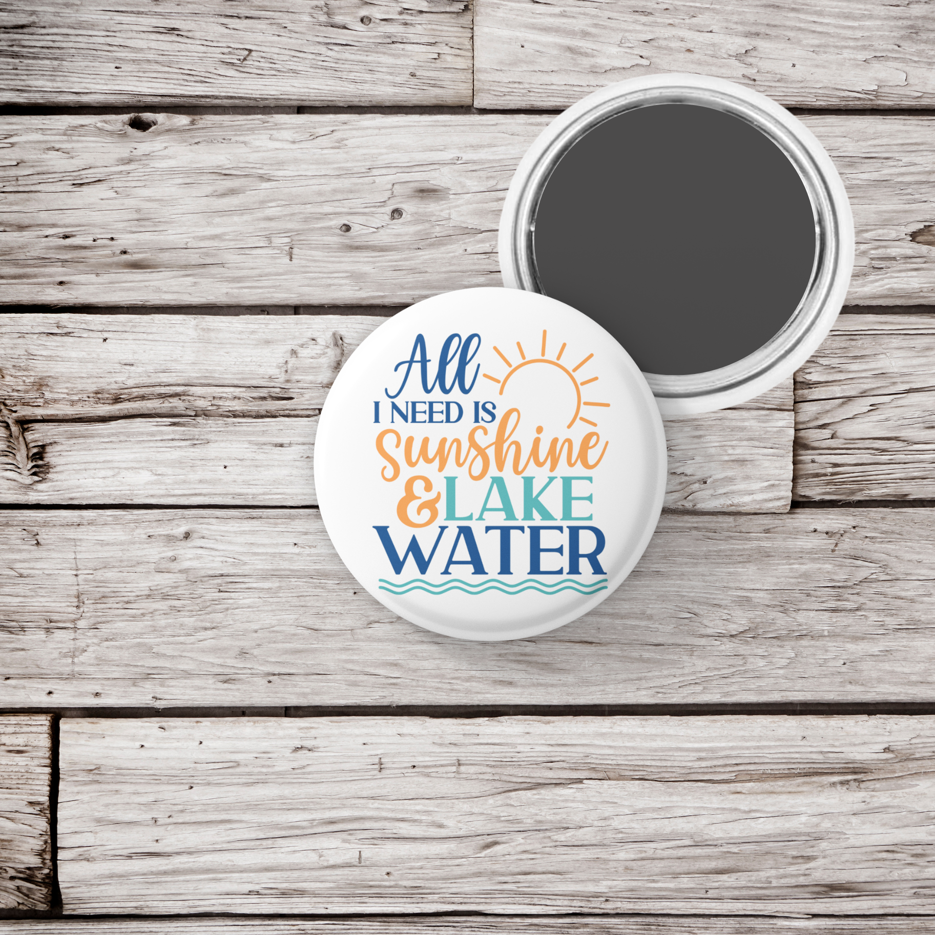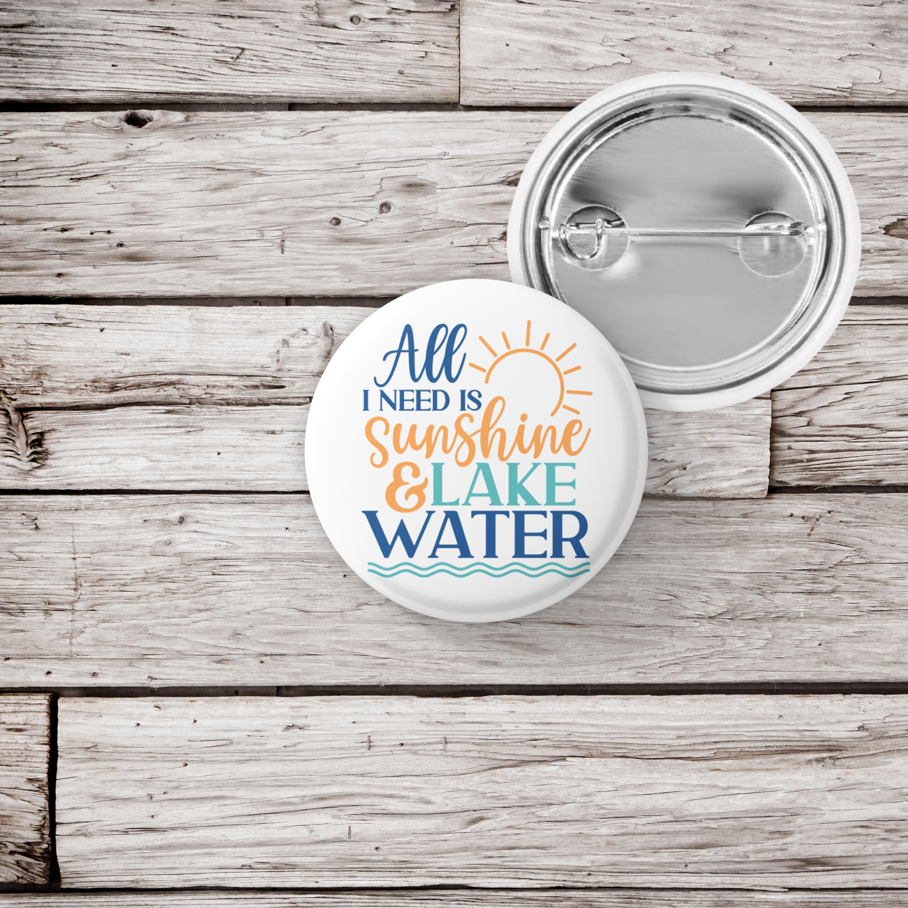 All I Need Is Sunshine & Lake Water Pin Back Button, Magnet, Keychain