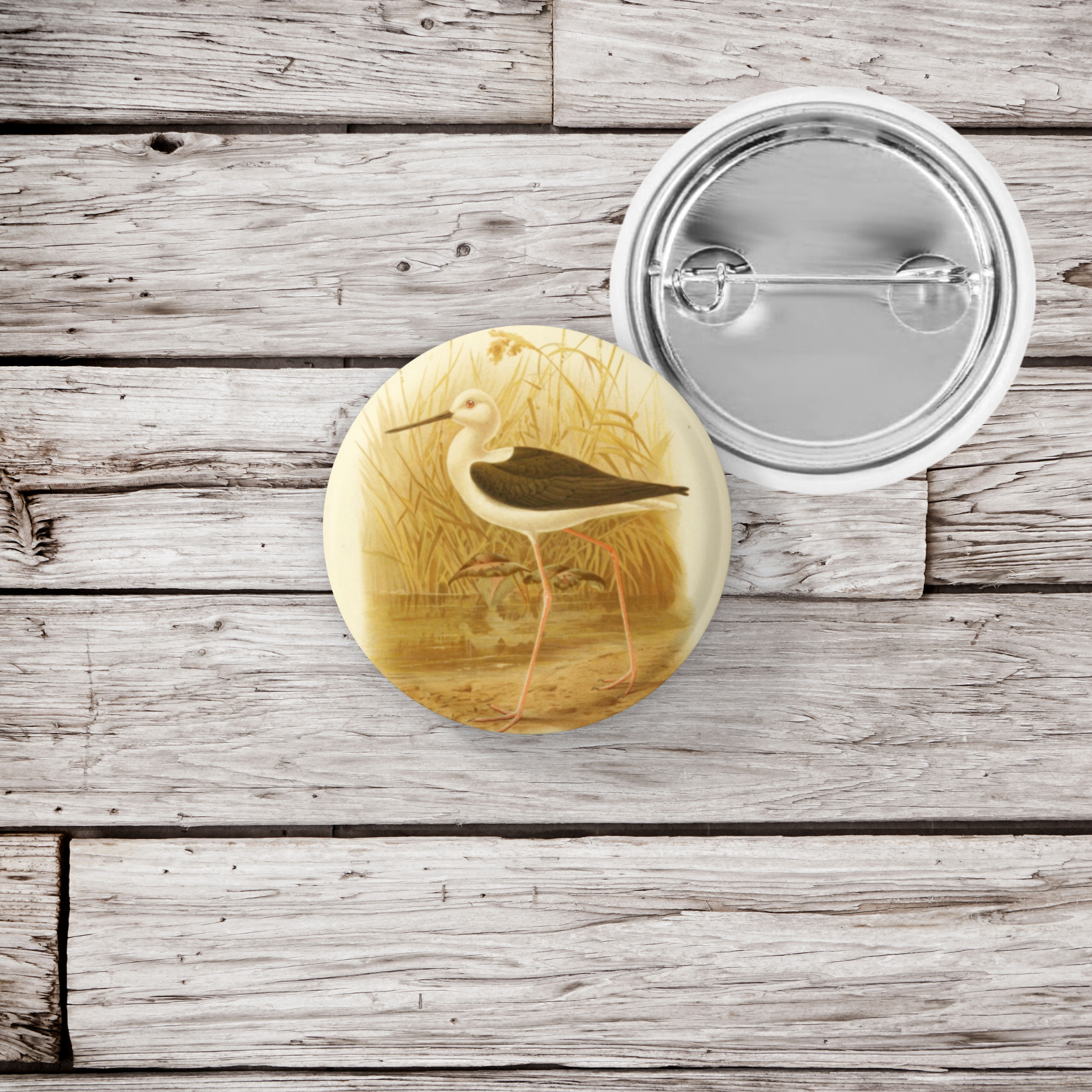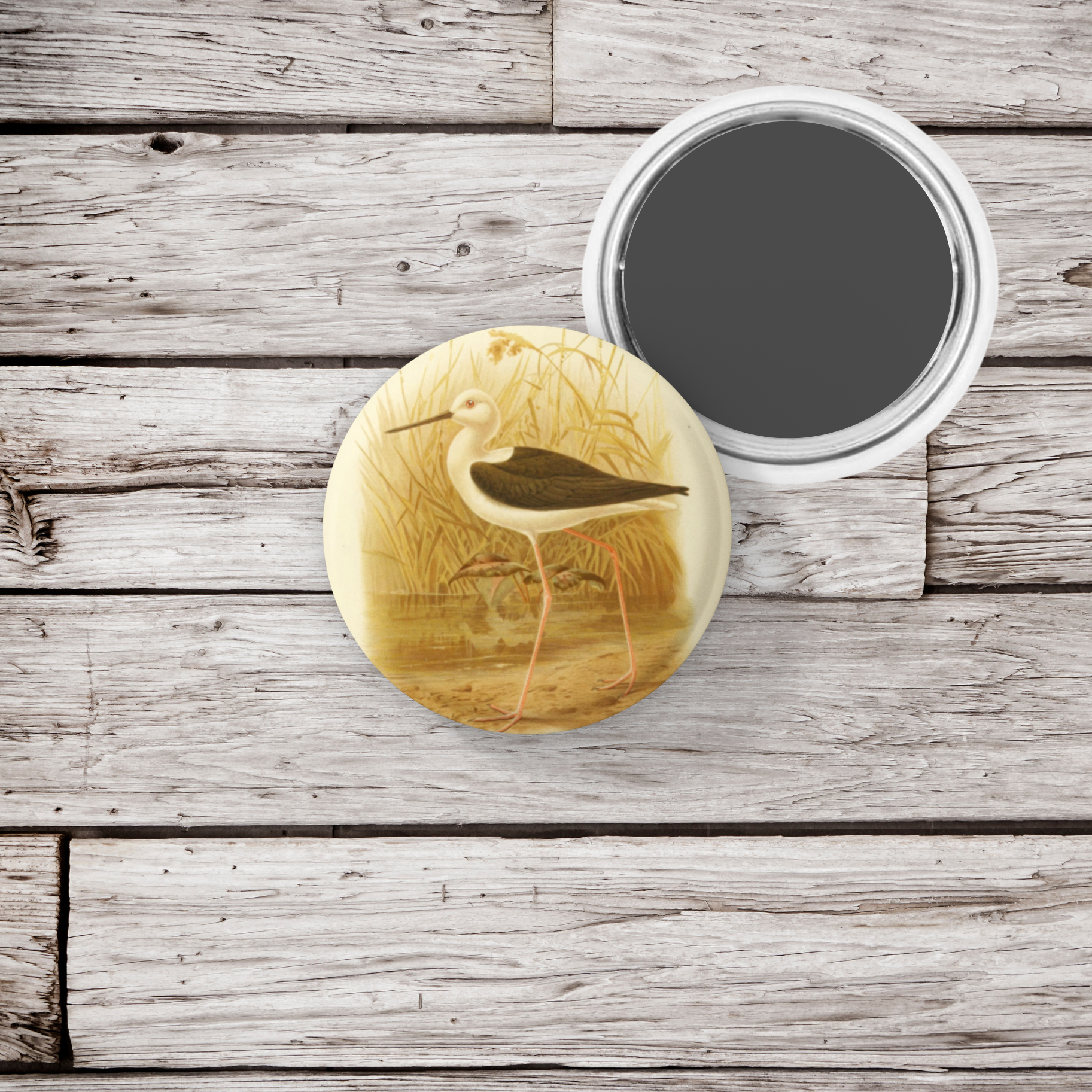 Long Legged Plover Bird Pin Back Button, Magnet, Keychain