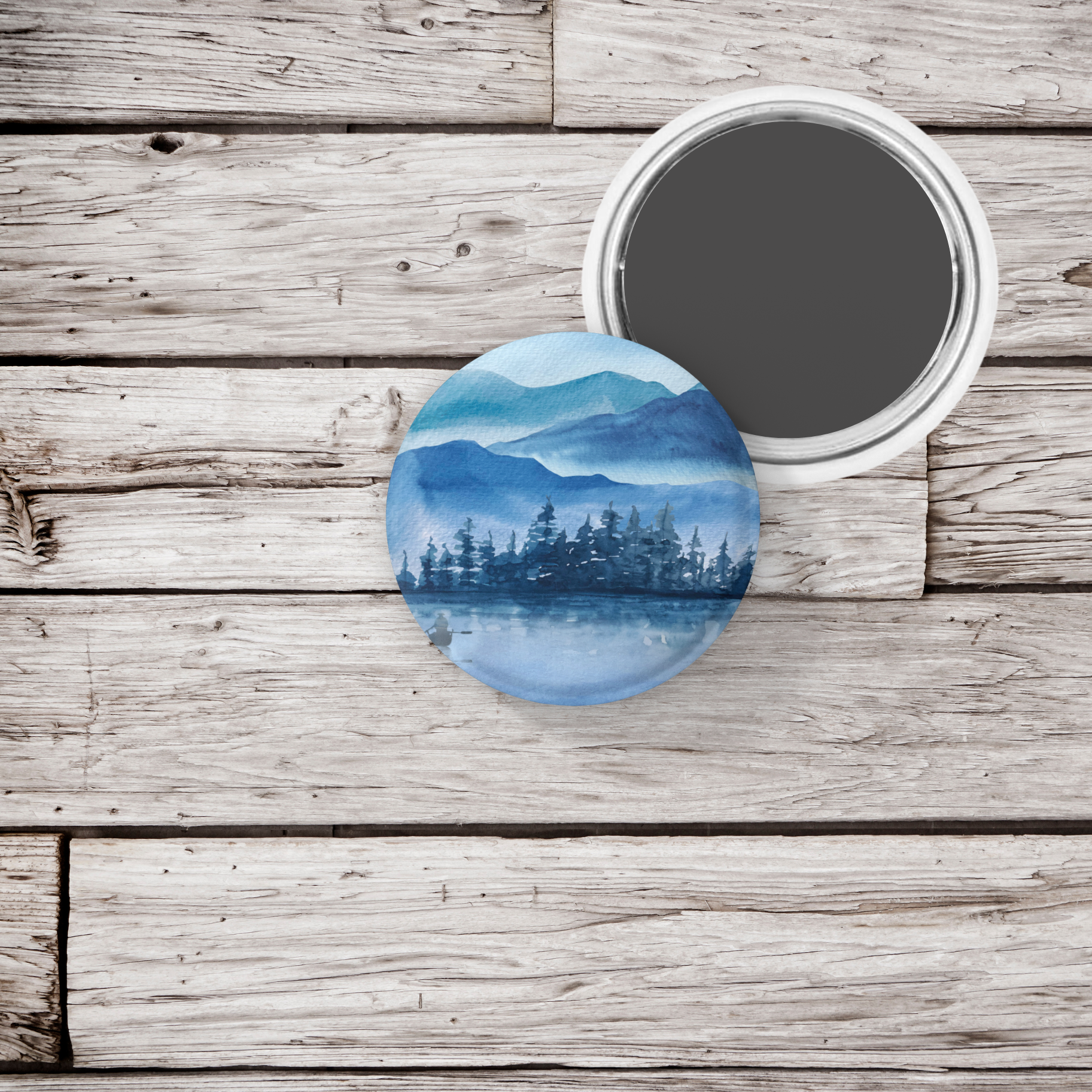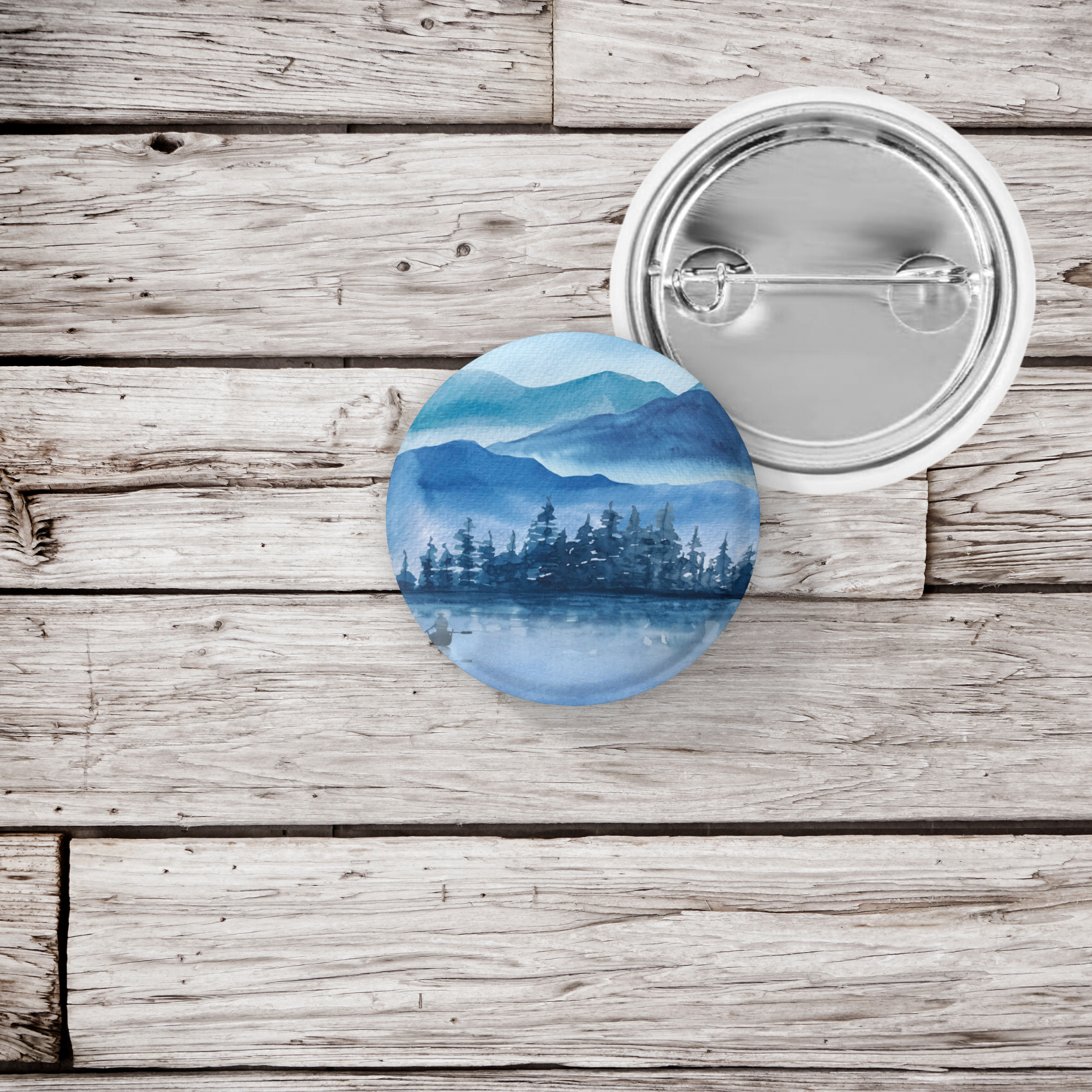 Blue Forest Lake Pin Pin Back Button, Magnet, Keychain