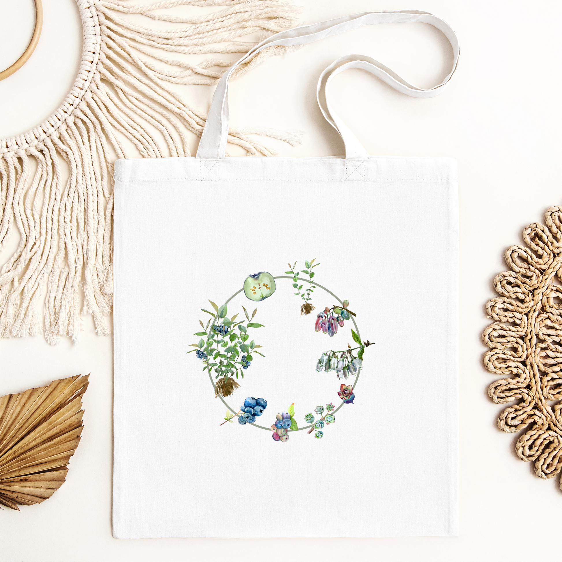 Blueberry Lifecycle Tote Bag, Reusable Canvas Tote