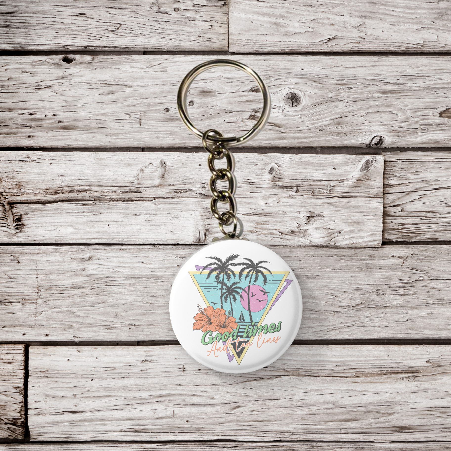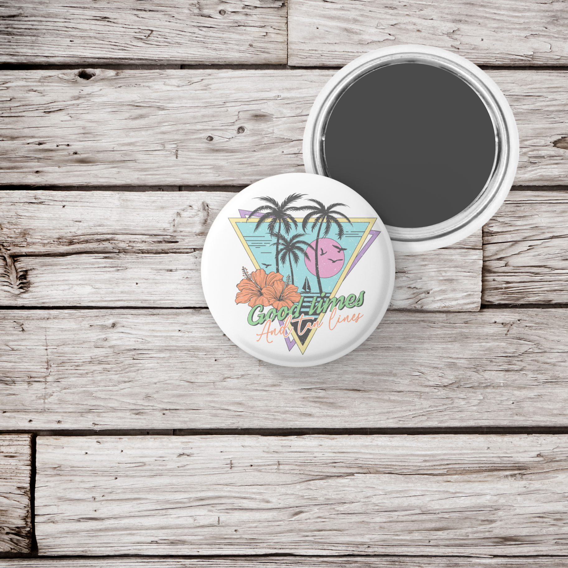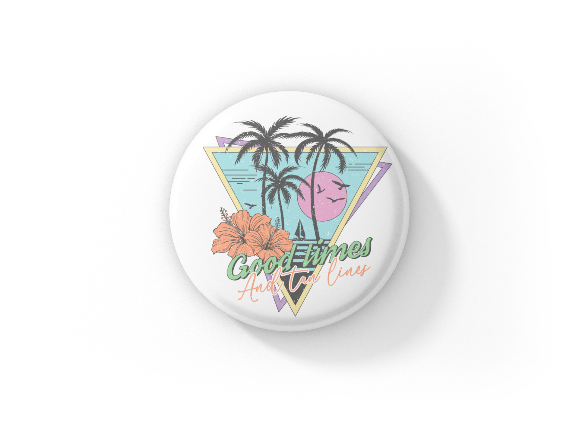 Good Times and Tan Lines Pin Back Button, Magnet, Keychain