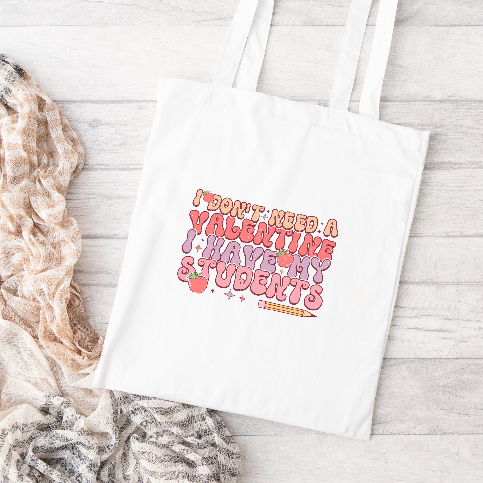 I Dont Need A Valentine I Have My Students Tote Bag, Reusable Tote Bag, Valentines Day Tote Bag