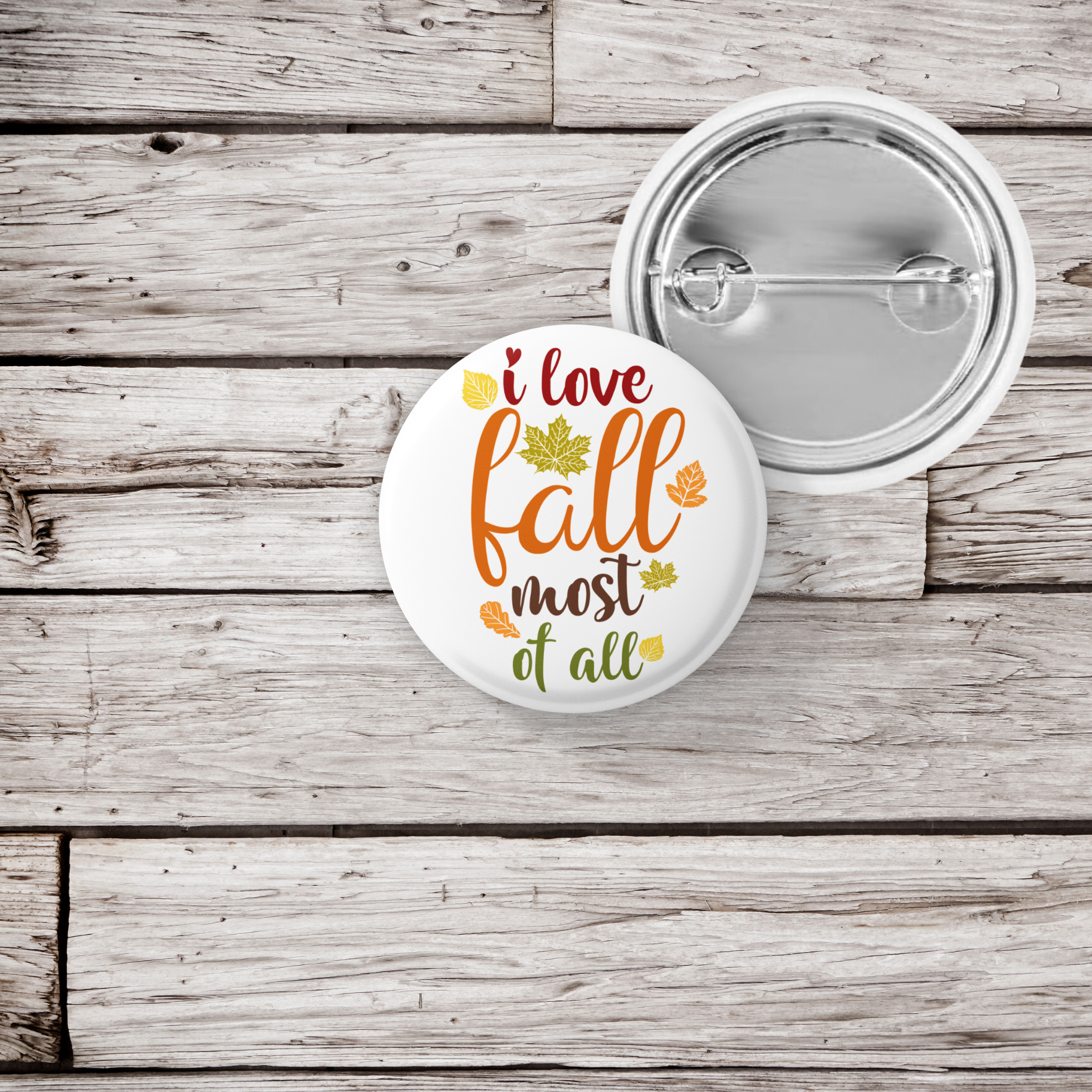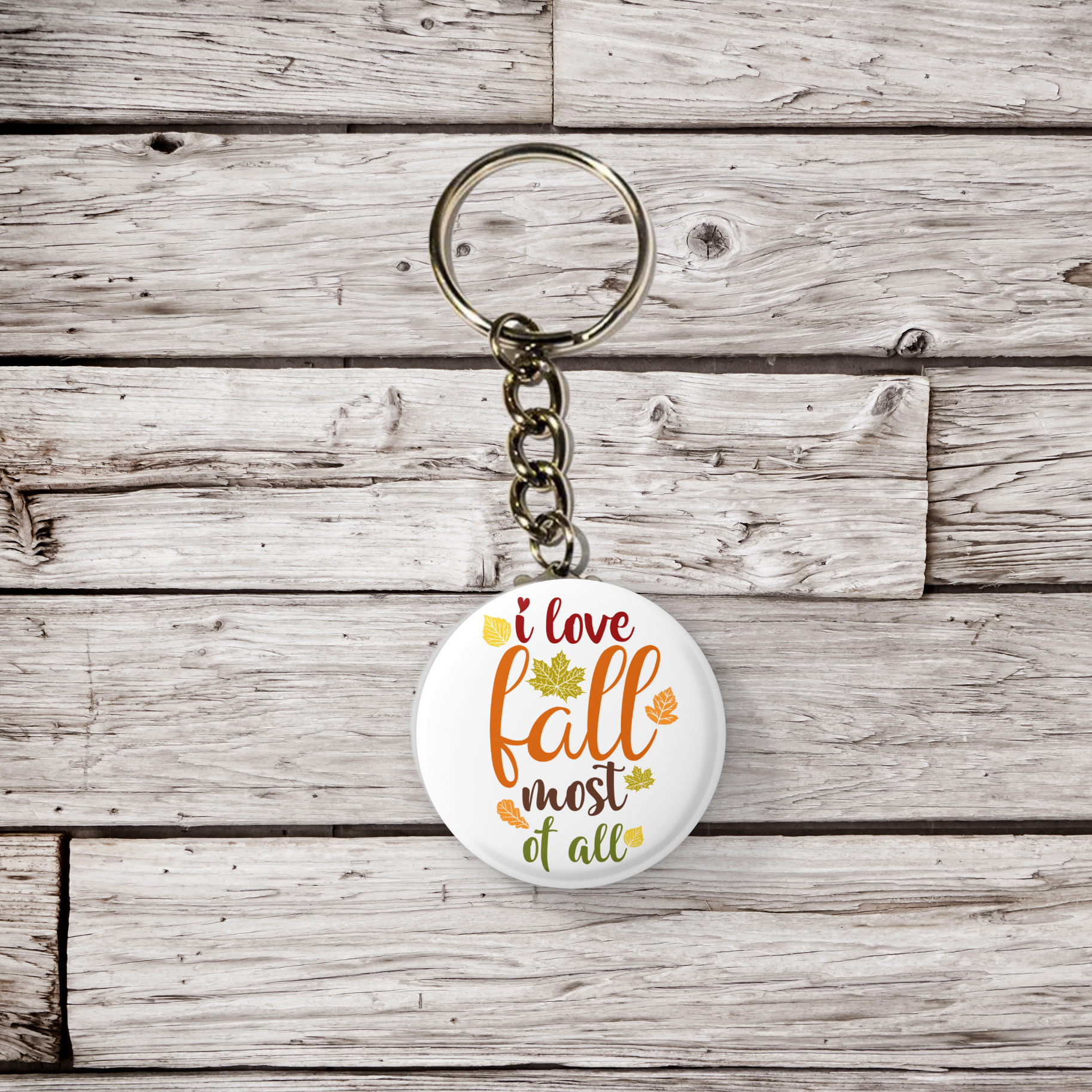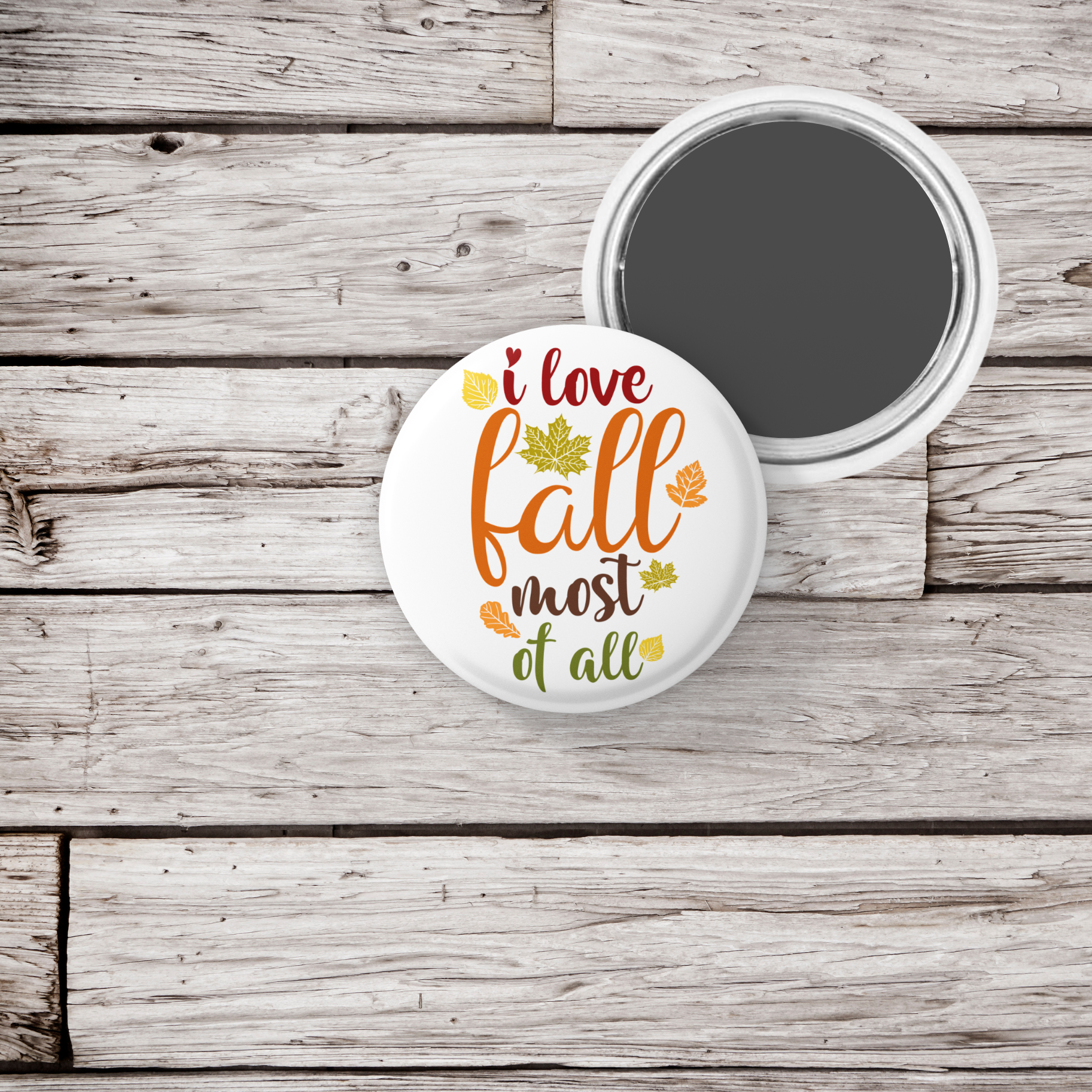 I Love Fall Most Of All Pin Back Button, Magnet, Keychain