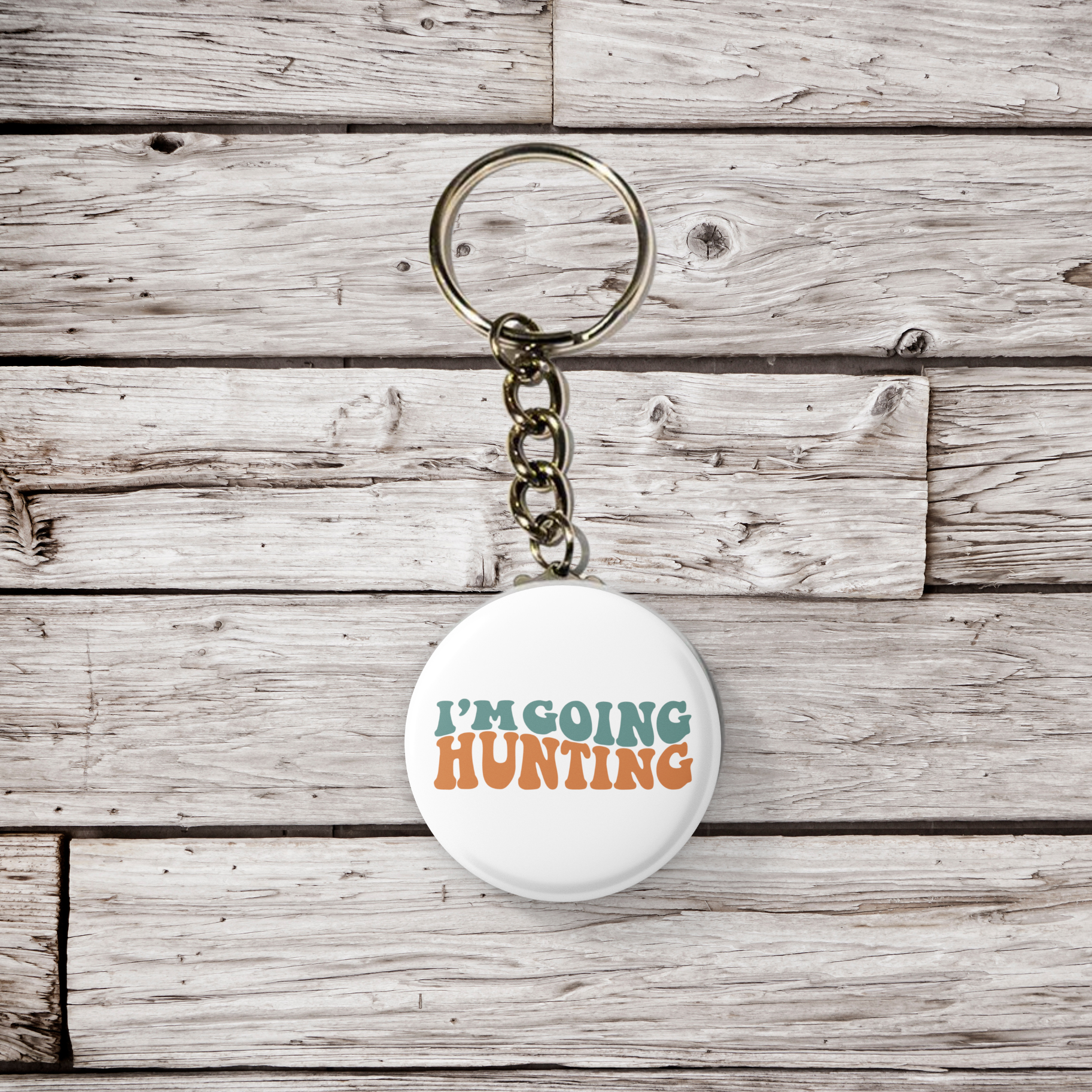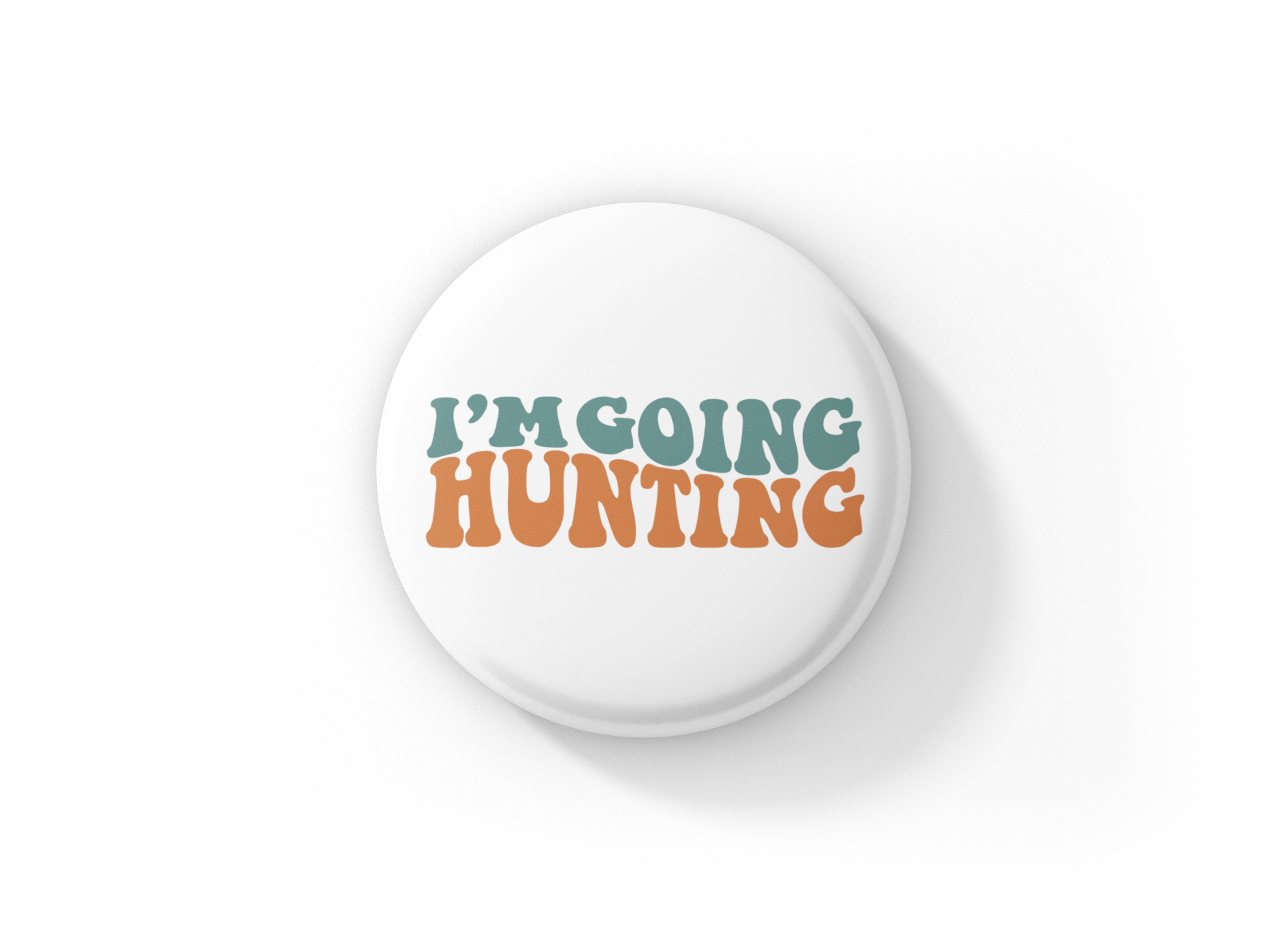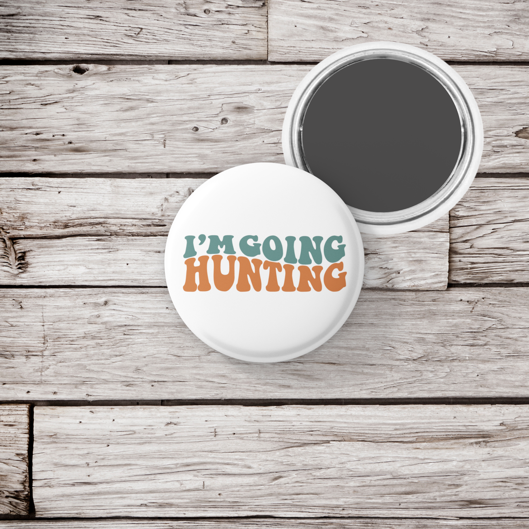I'm Going Hunting Pin Back Button, Magnet, Keychain