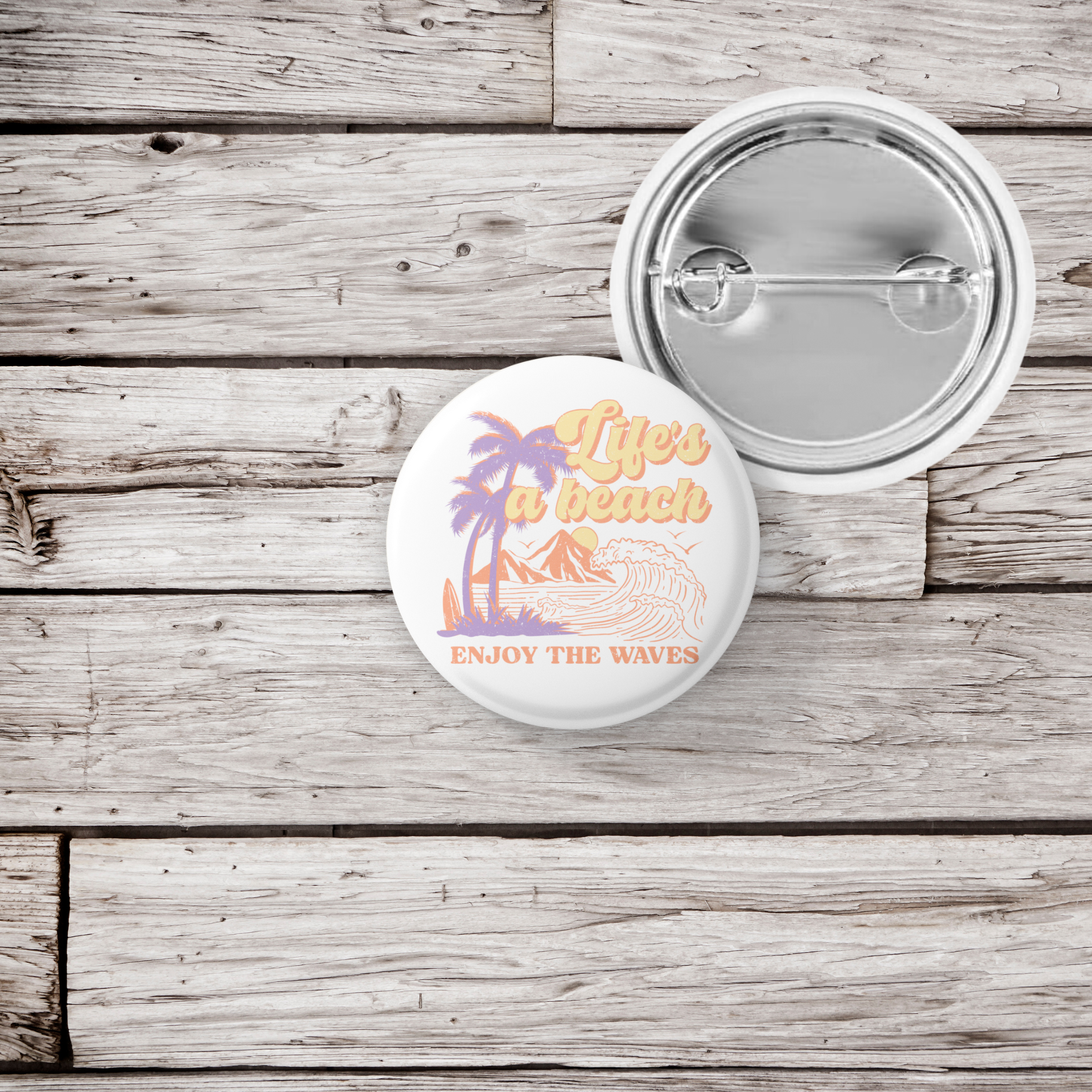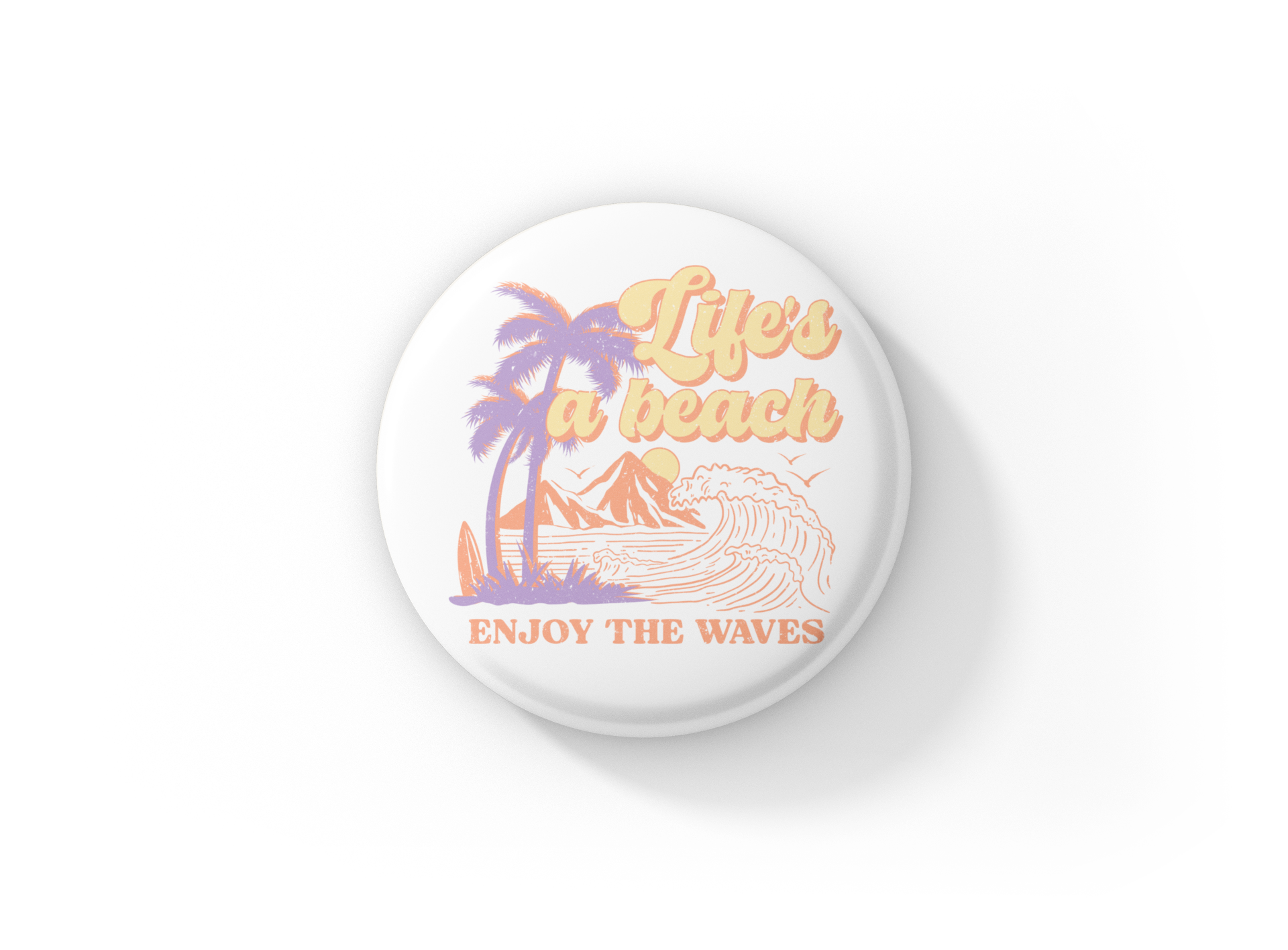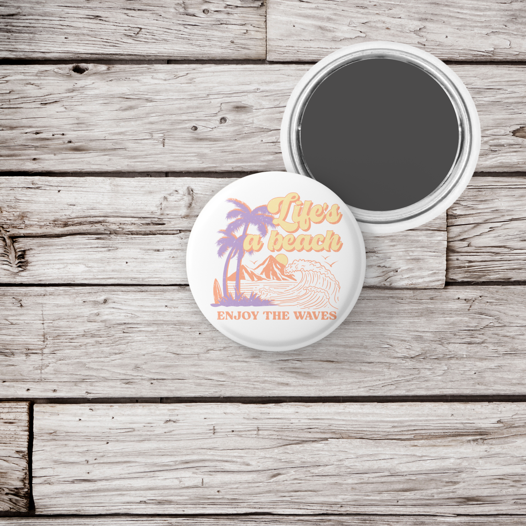 Life's A Beach Enjoy The Waves Pin Back Button, Magnet, Keychain