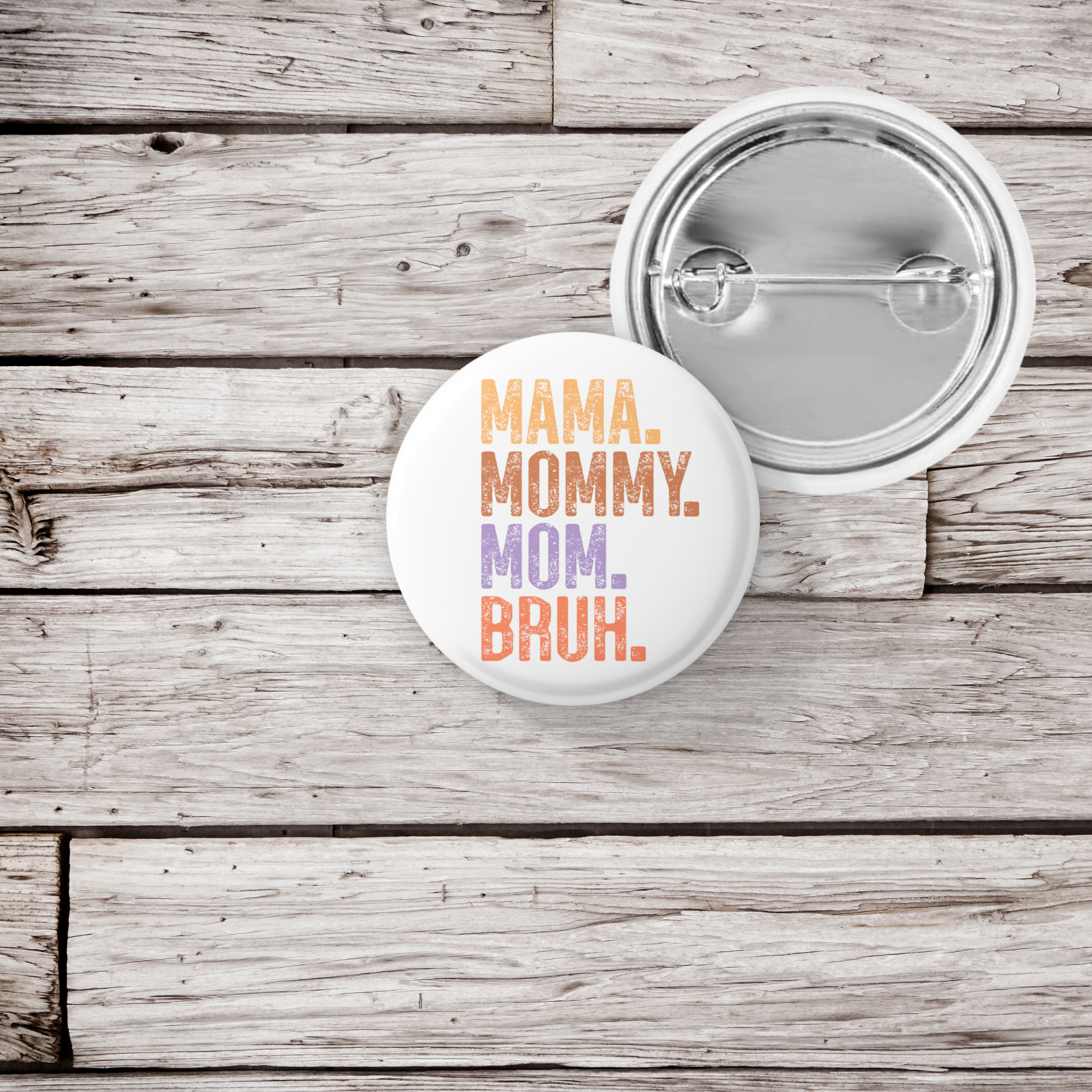 Mama Mommy Mom Bruh Pin Back Button, Magnet, Keychain