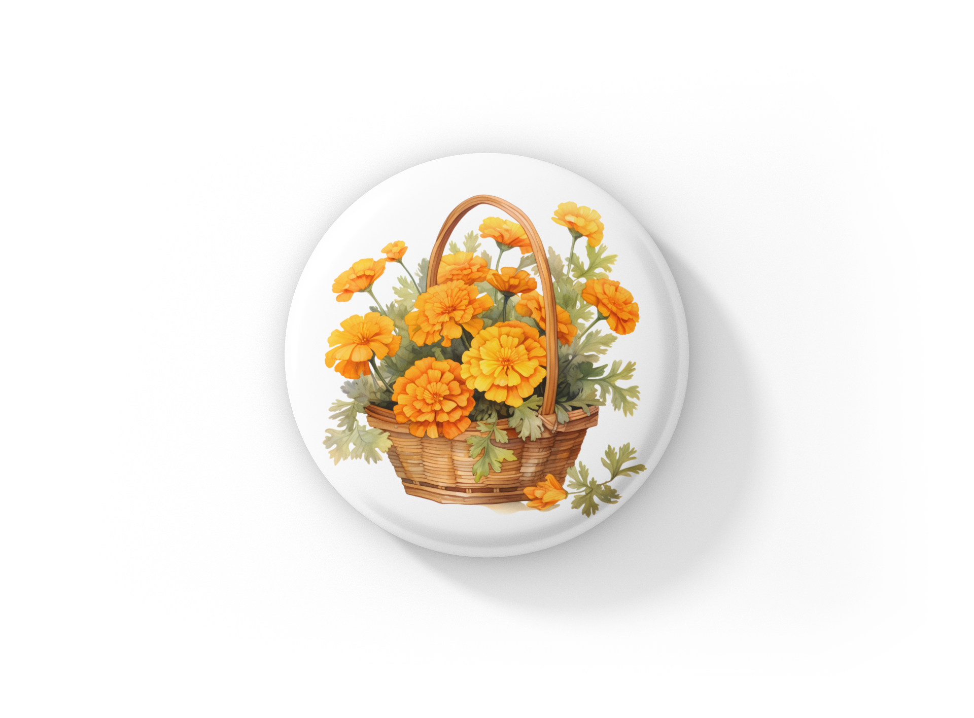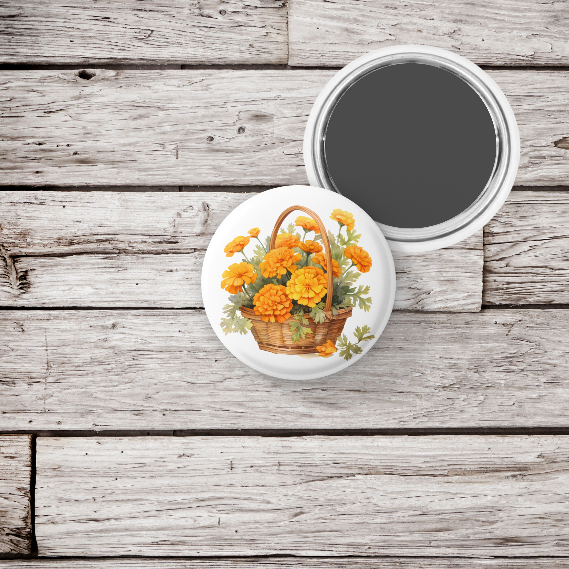 Marigold 2 Pin Pin Back Button, Magnet, Keychain