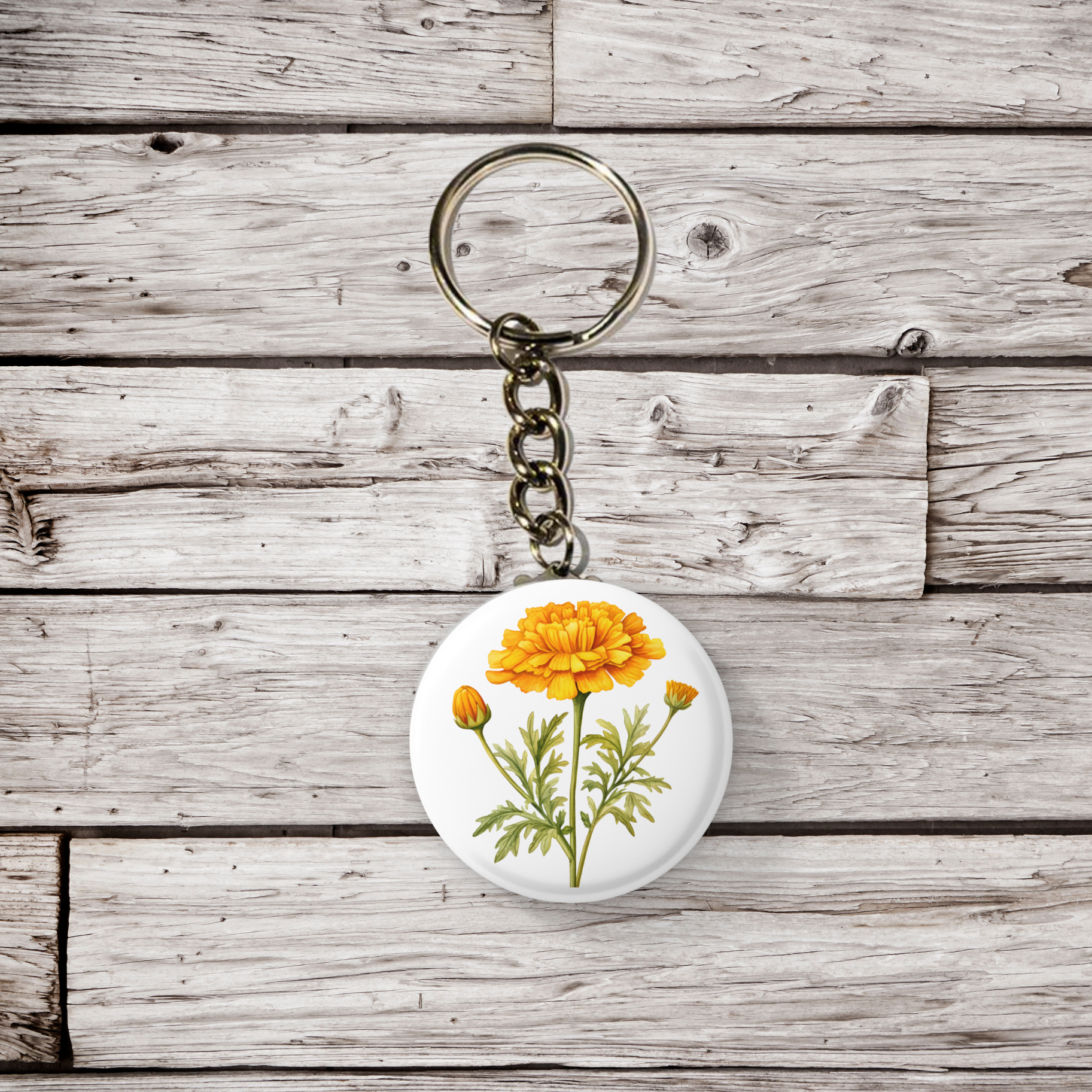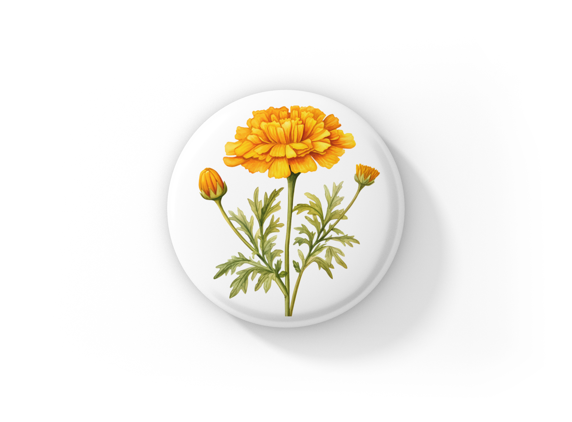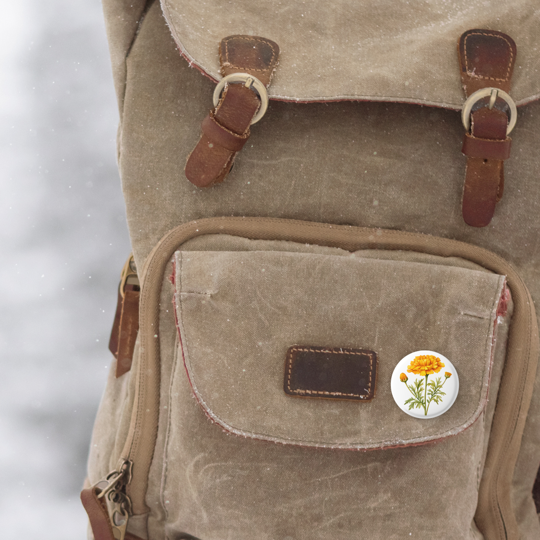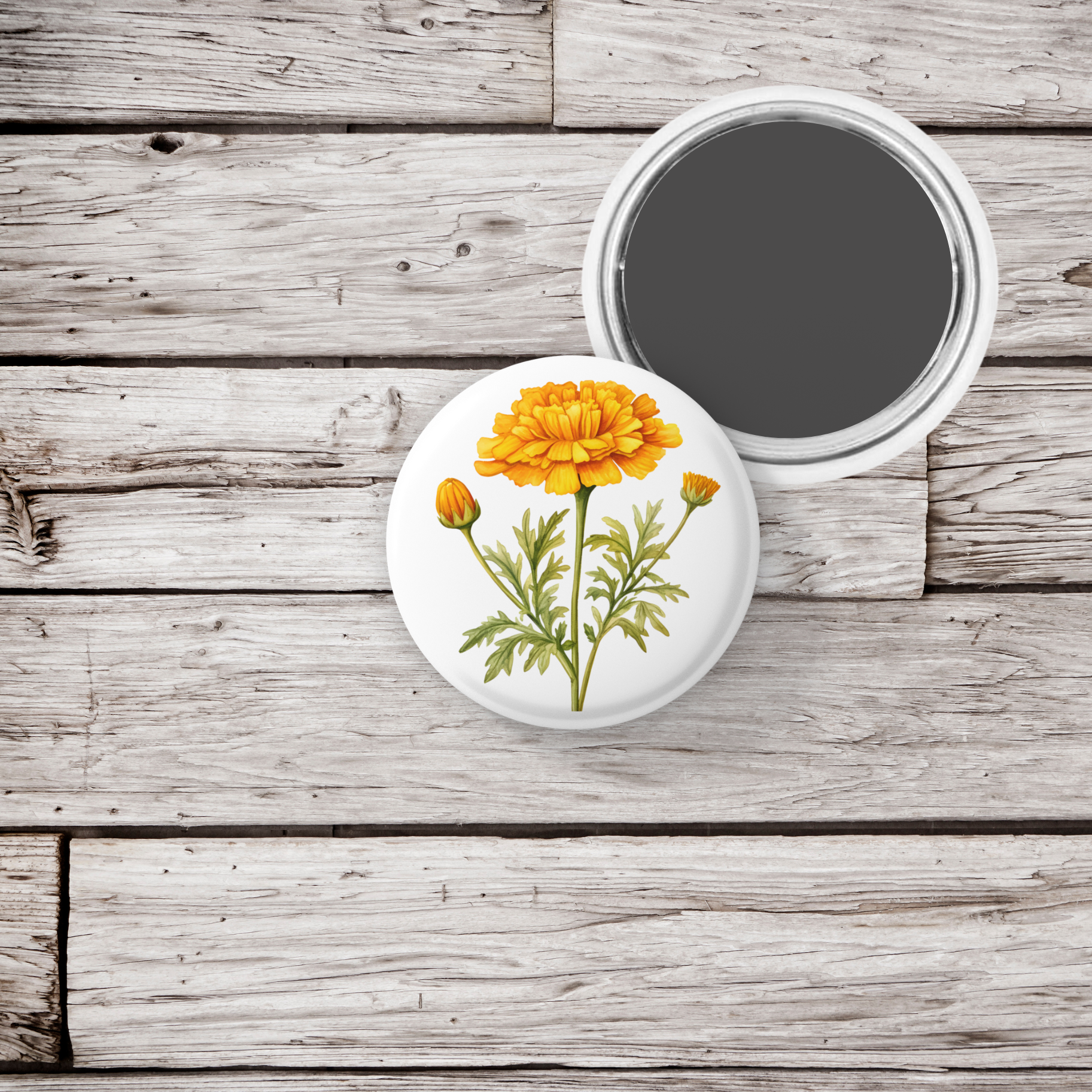 Marigold 3 Pin Pin Back Button, Magnet, Keychain