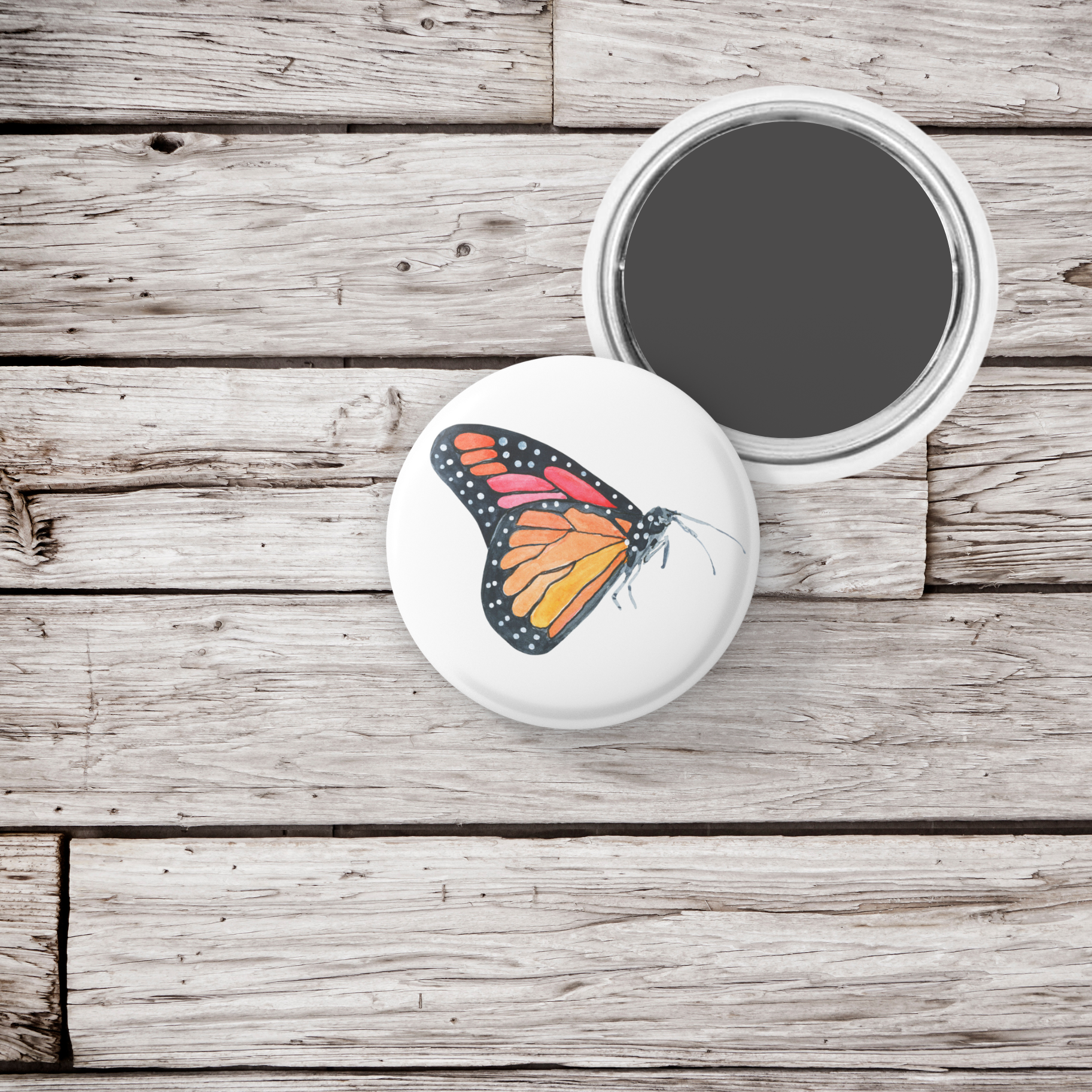 Monarch Butterfly Pin Back Button, Magnet, Keychain