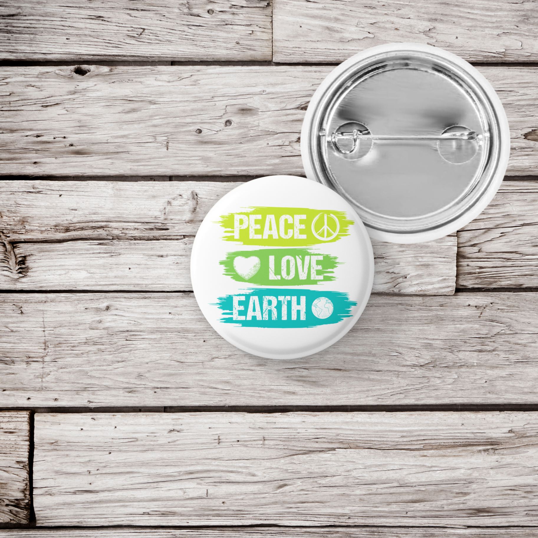 Peace Love Earth Pin Back Button, Magnet, Keychain