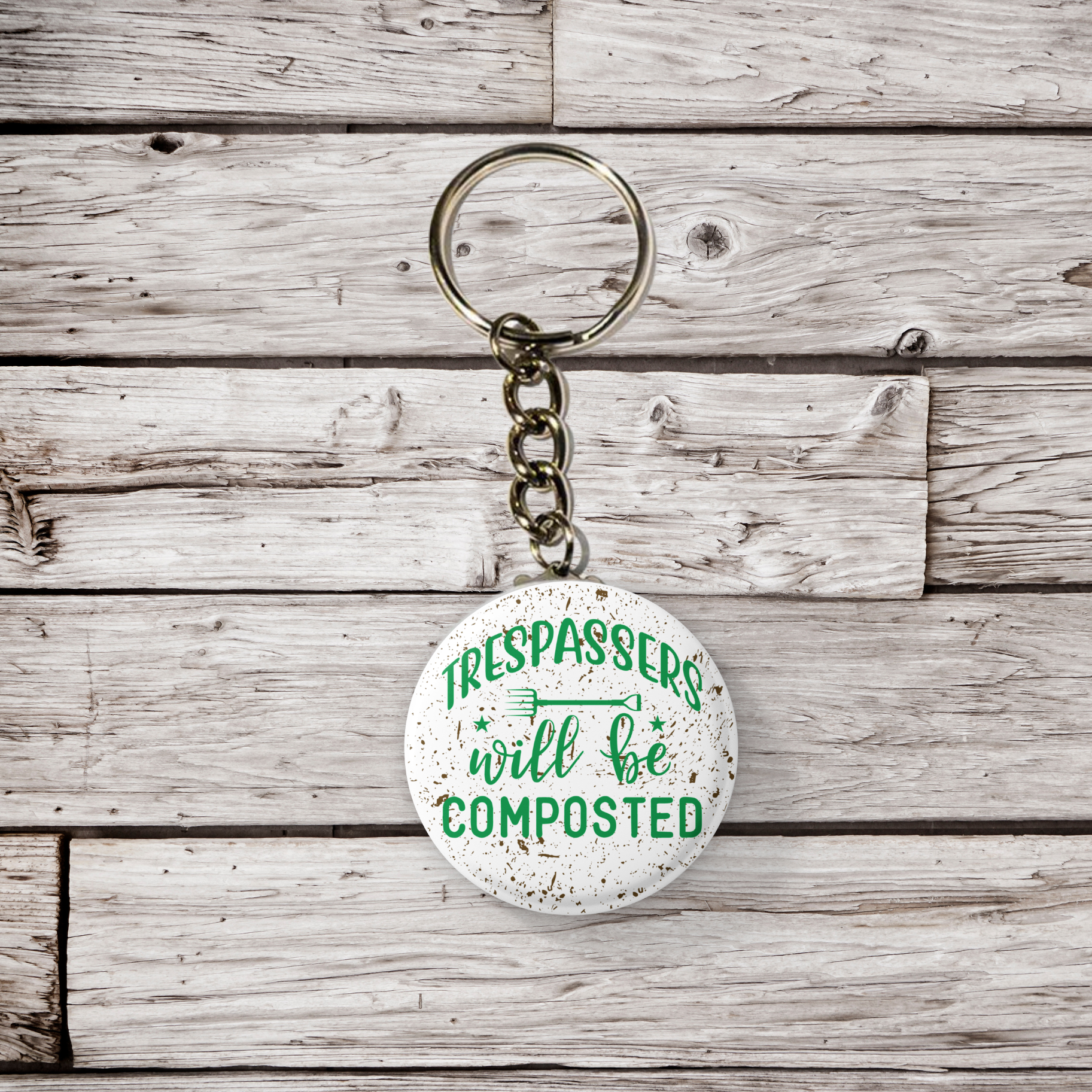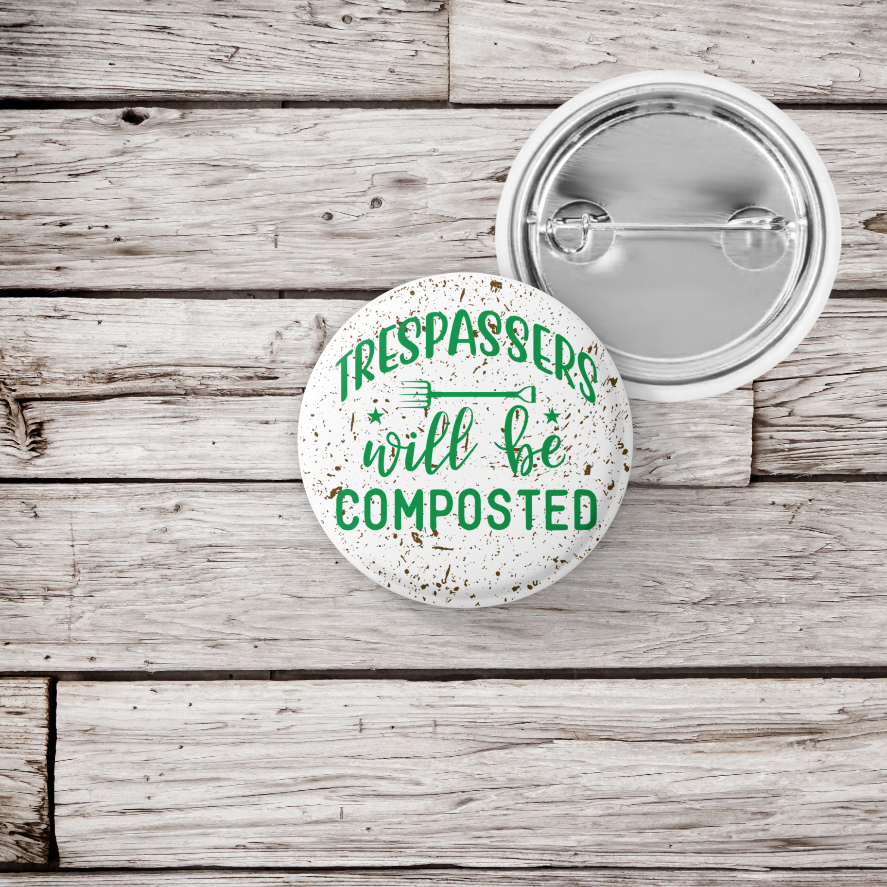 Trespassers Will Be Composted Pin Back Button, Magnet, Keychain