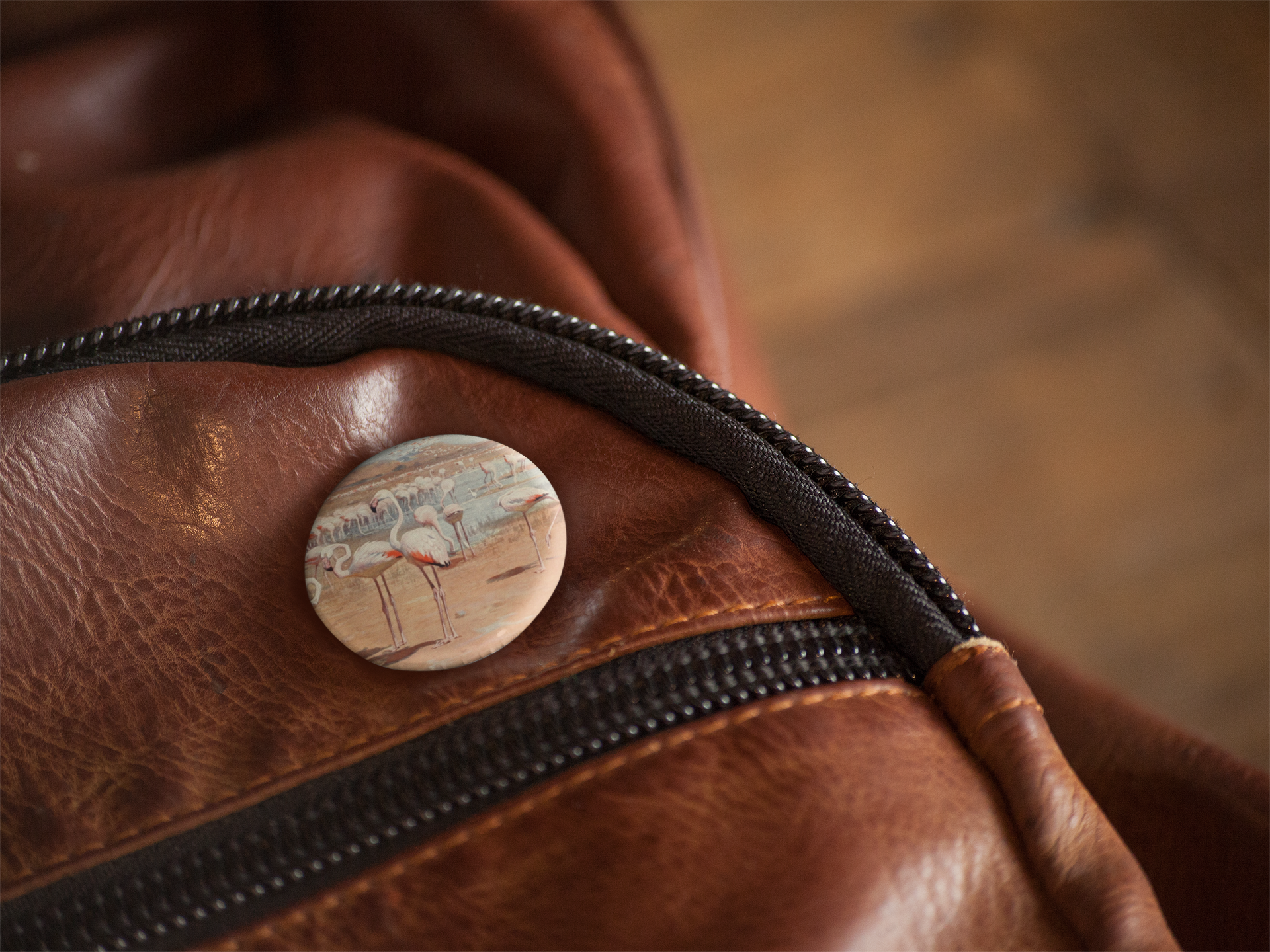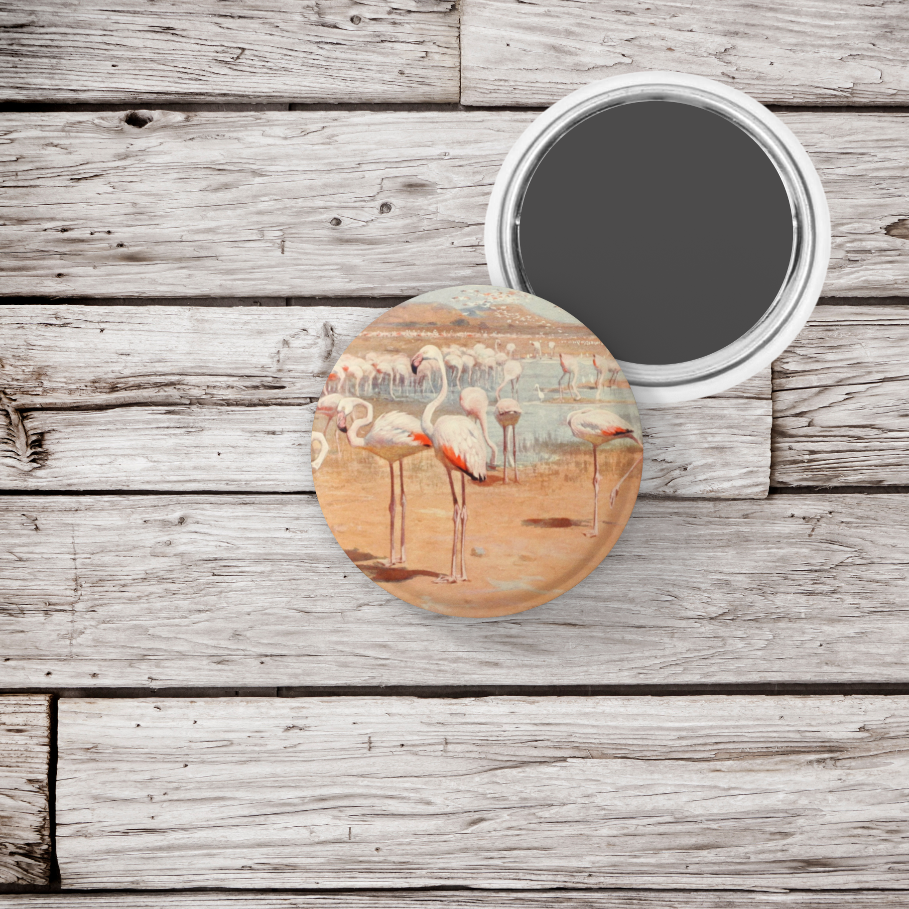 Pink Flamingo Pin Back Button, Magnet, Keychain