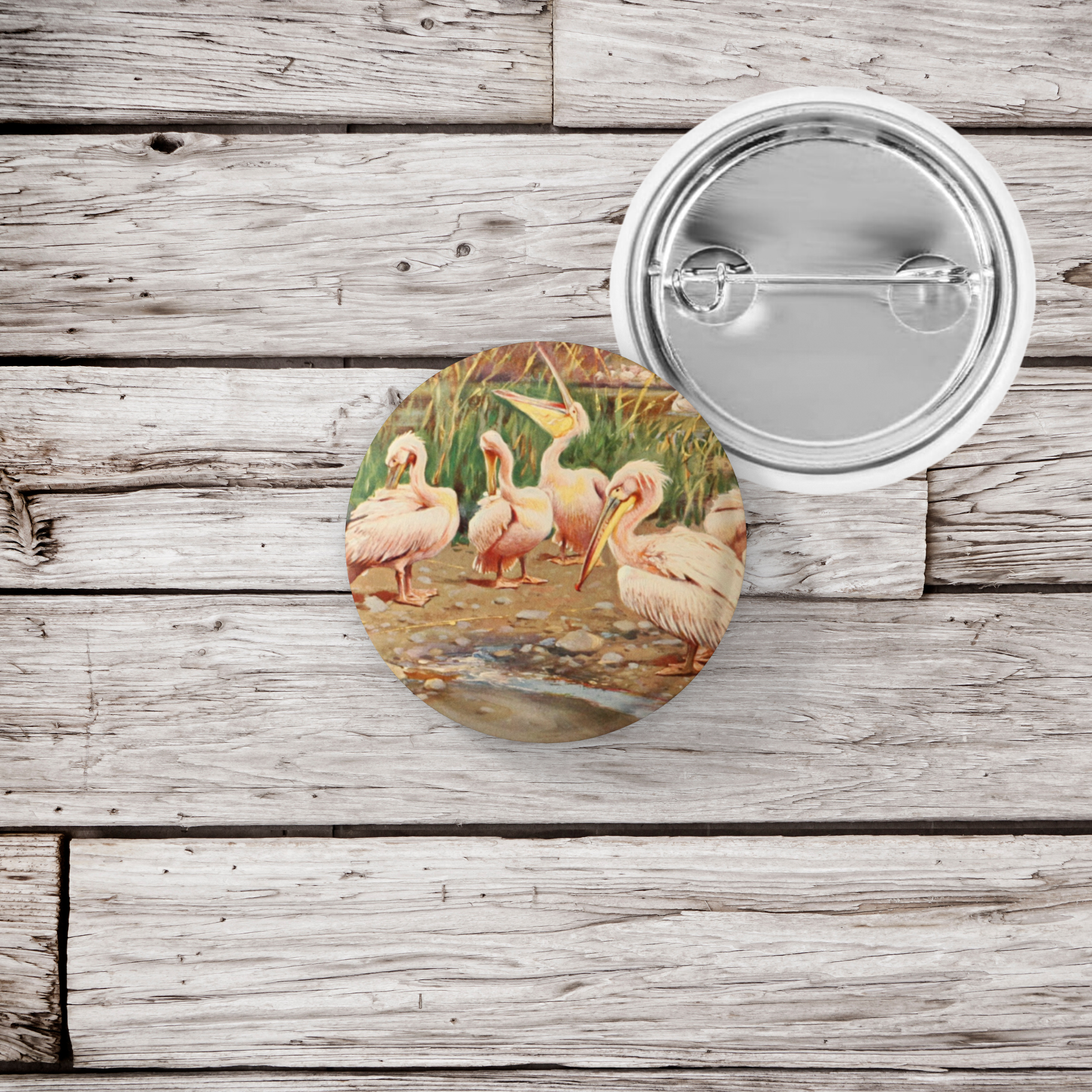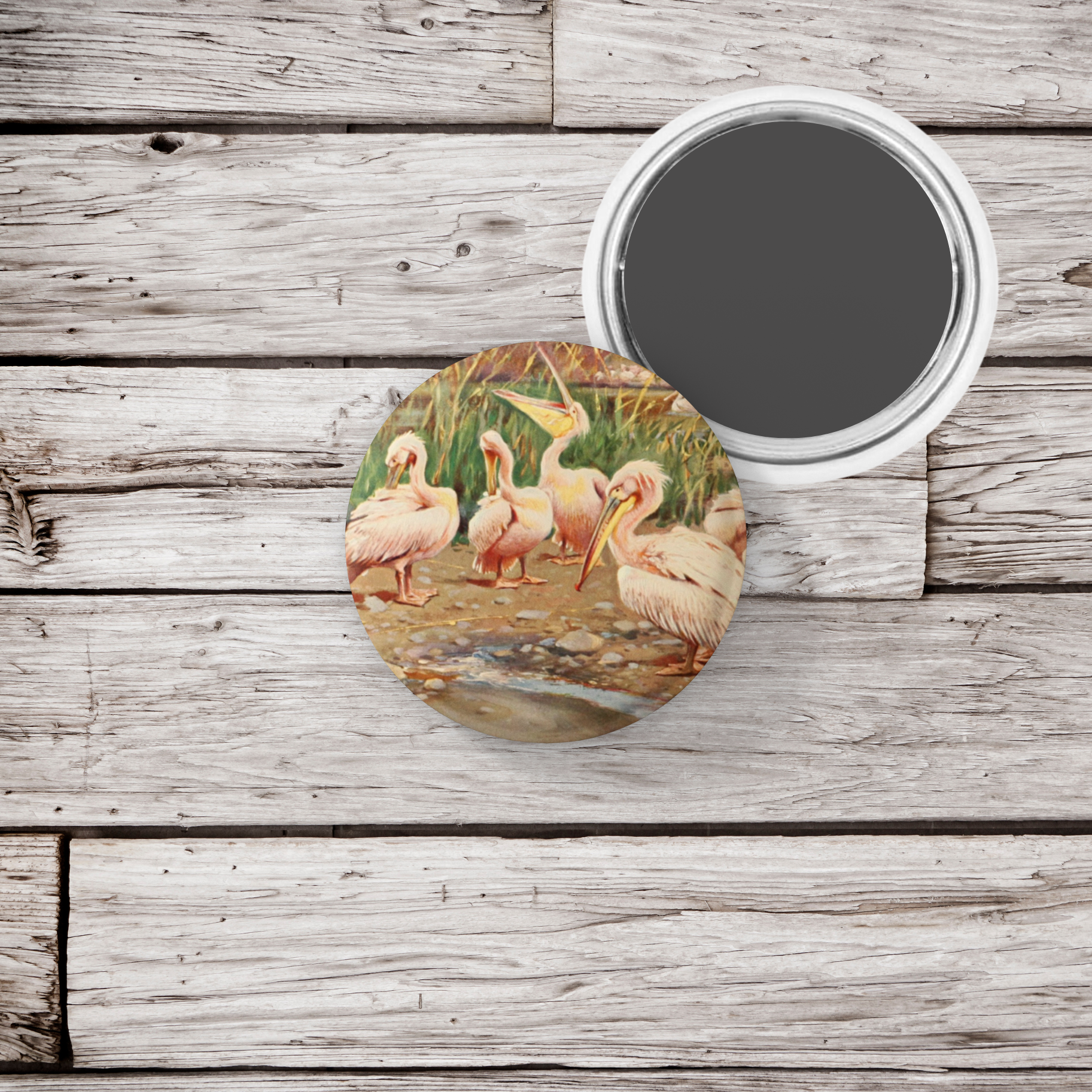 Pink Pelican Pin Back Button, Magnet, Keychain