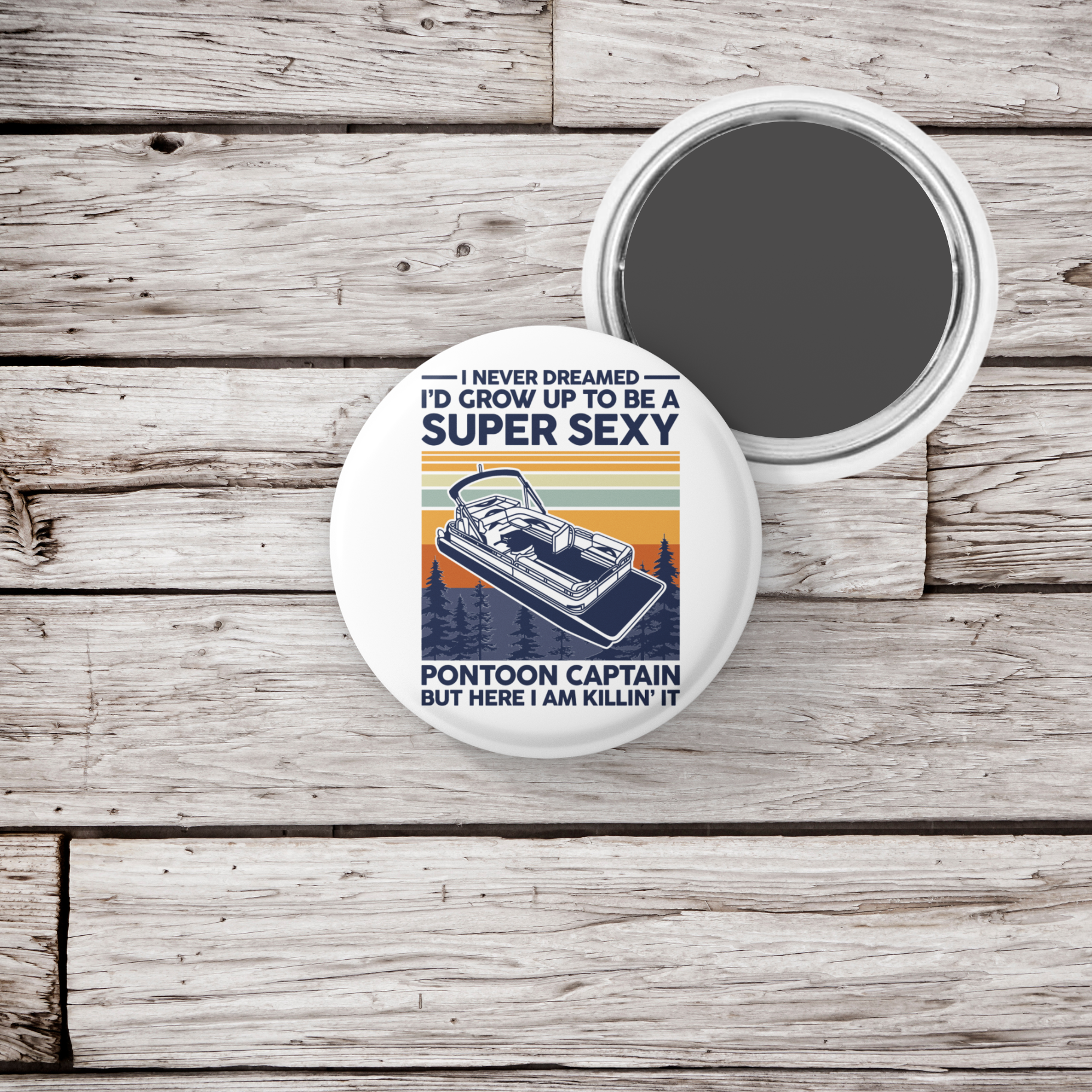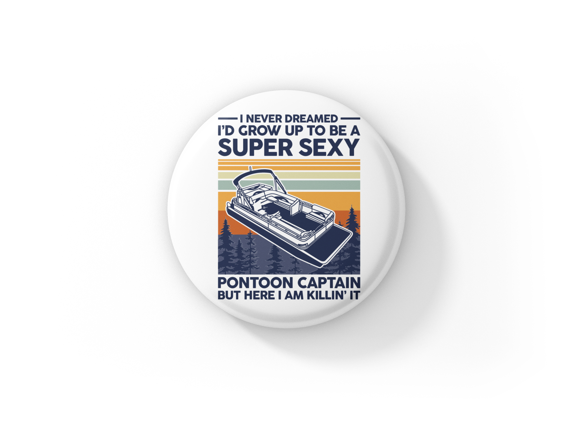Pontoon Captain Pin Back Button, Magnet, Keychain