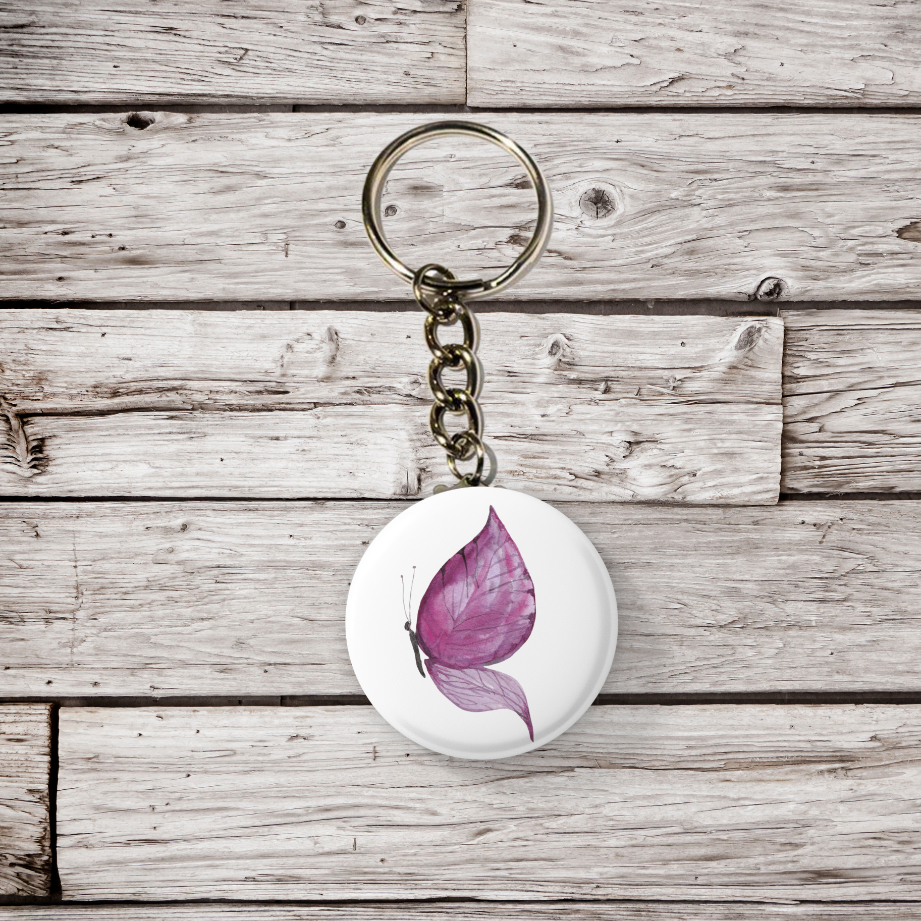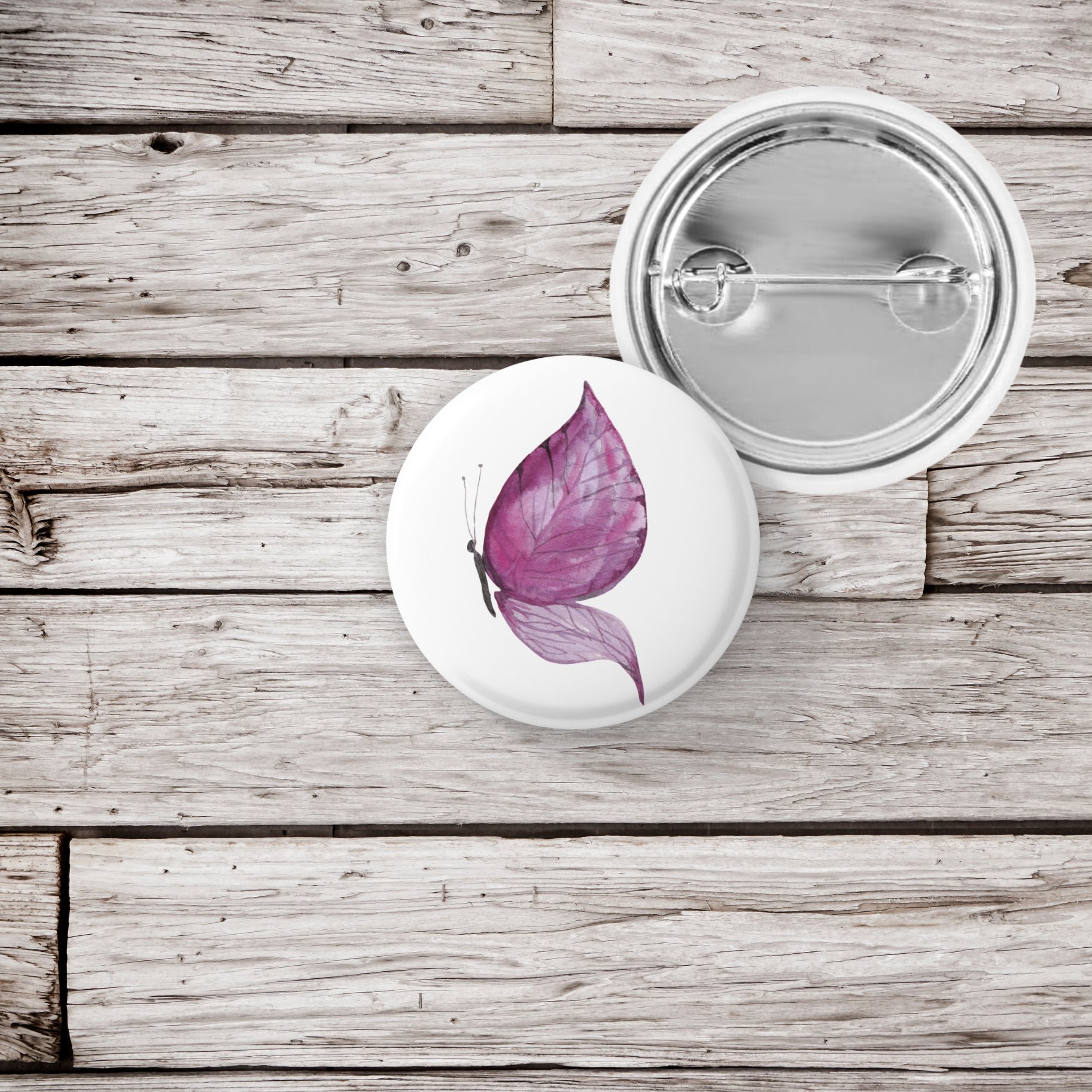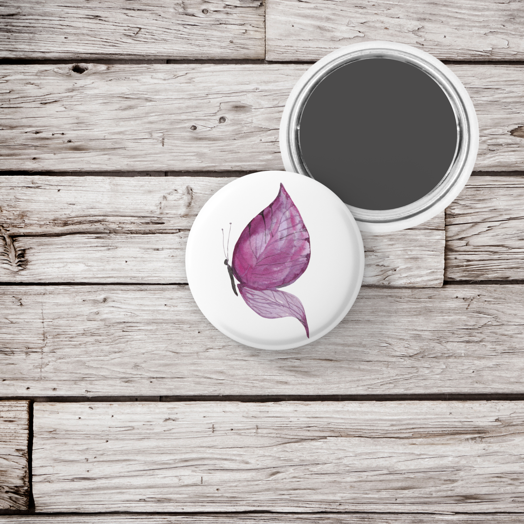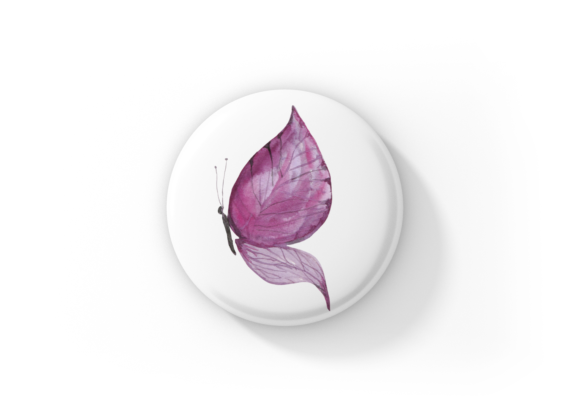 Purple Butterfly Pin Back Button, Magnet, Keychain