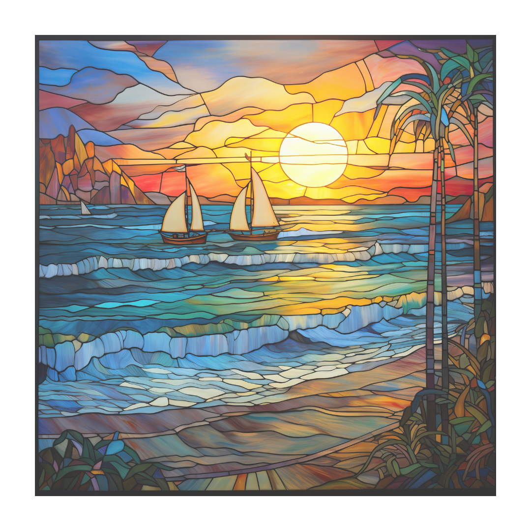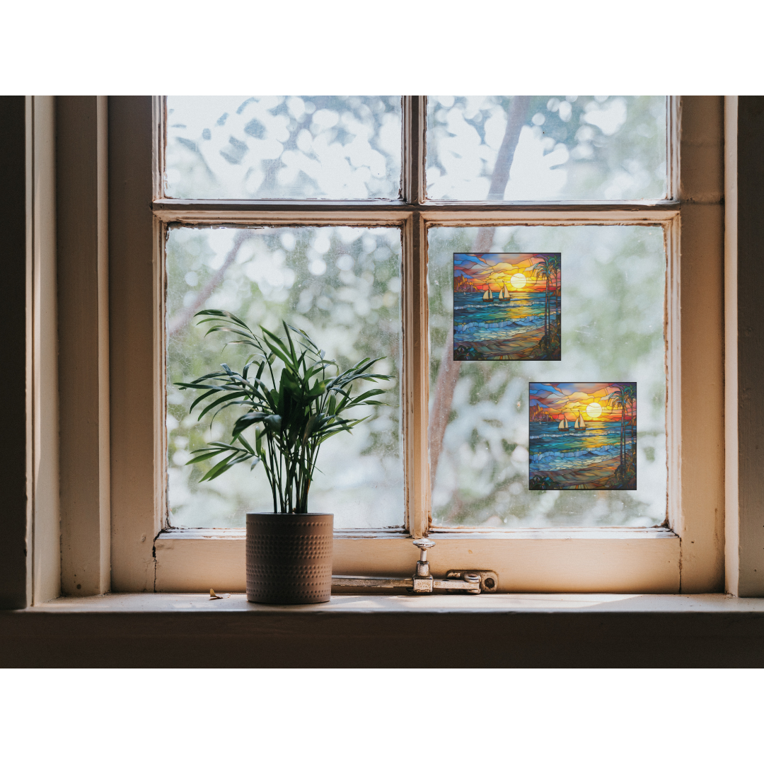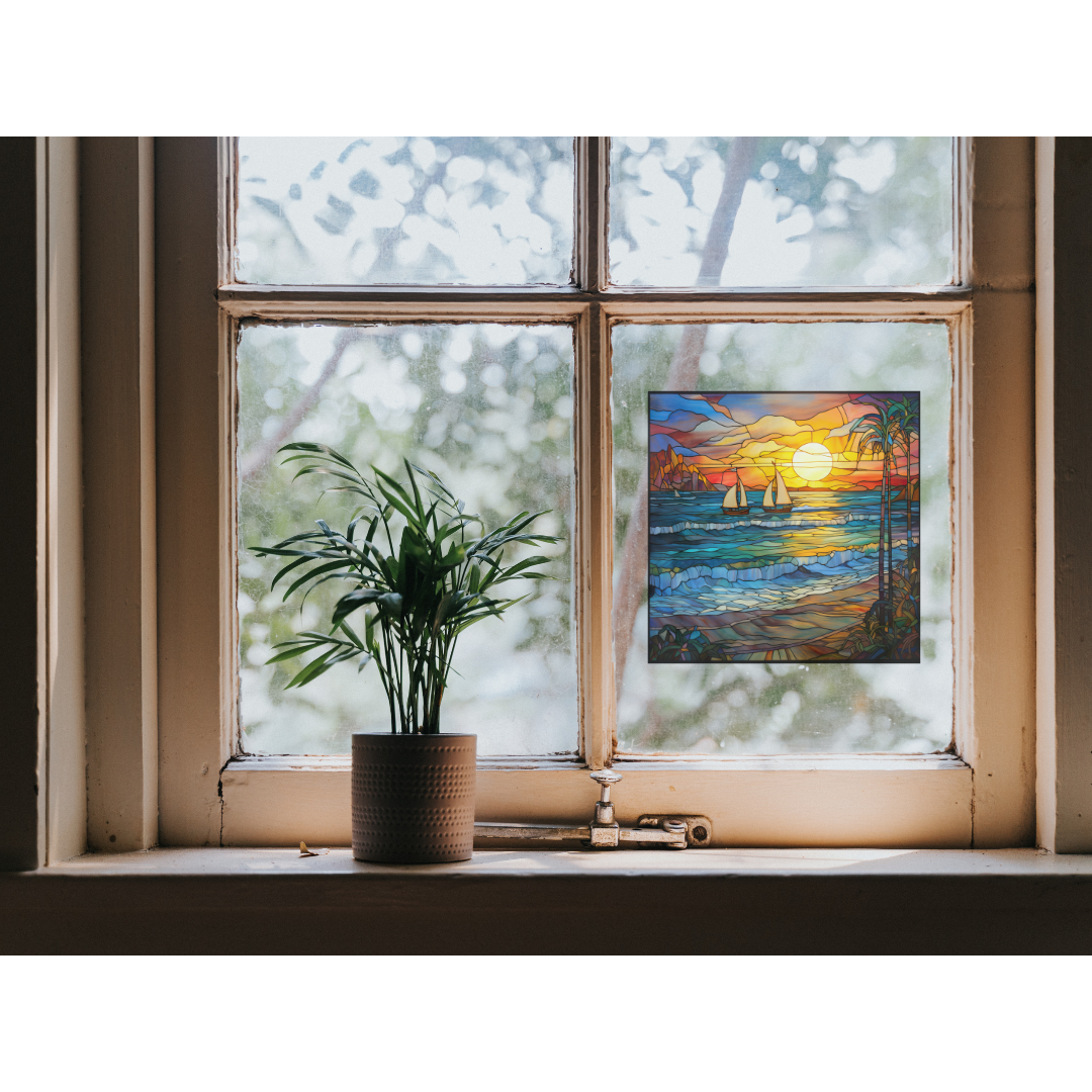 Sail Boat Beach Stained Glass Window Cling