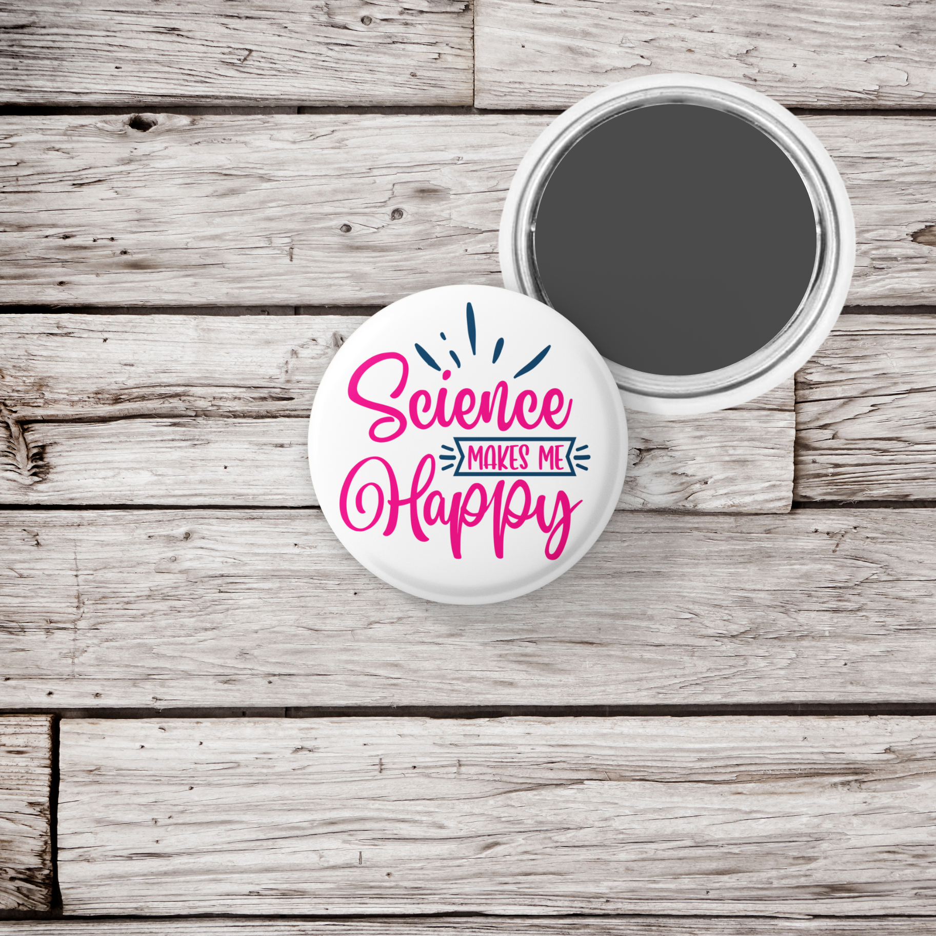 Science Makes Me Happy Pin Back Button, Magnet, Keychain