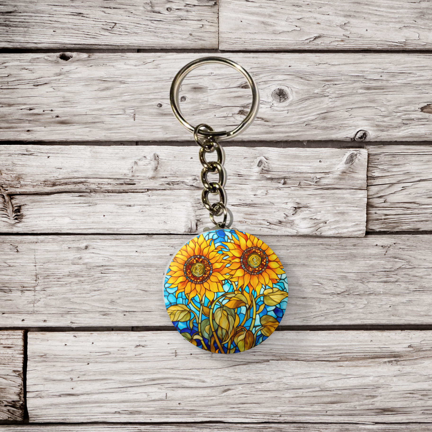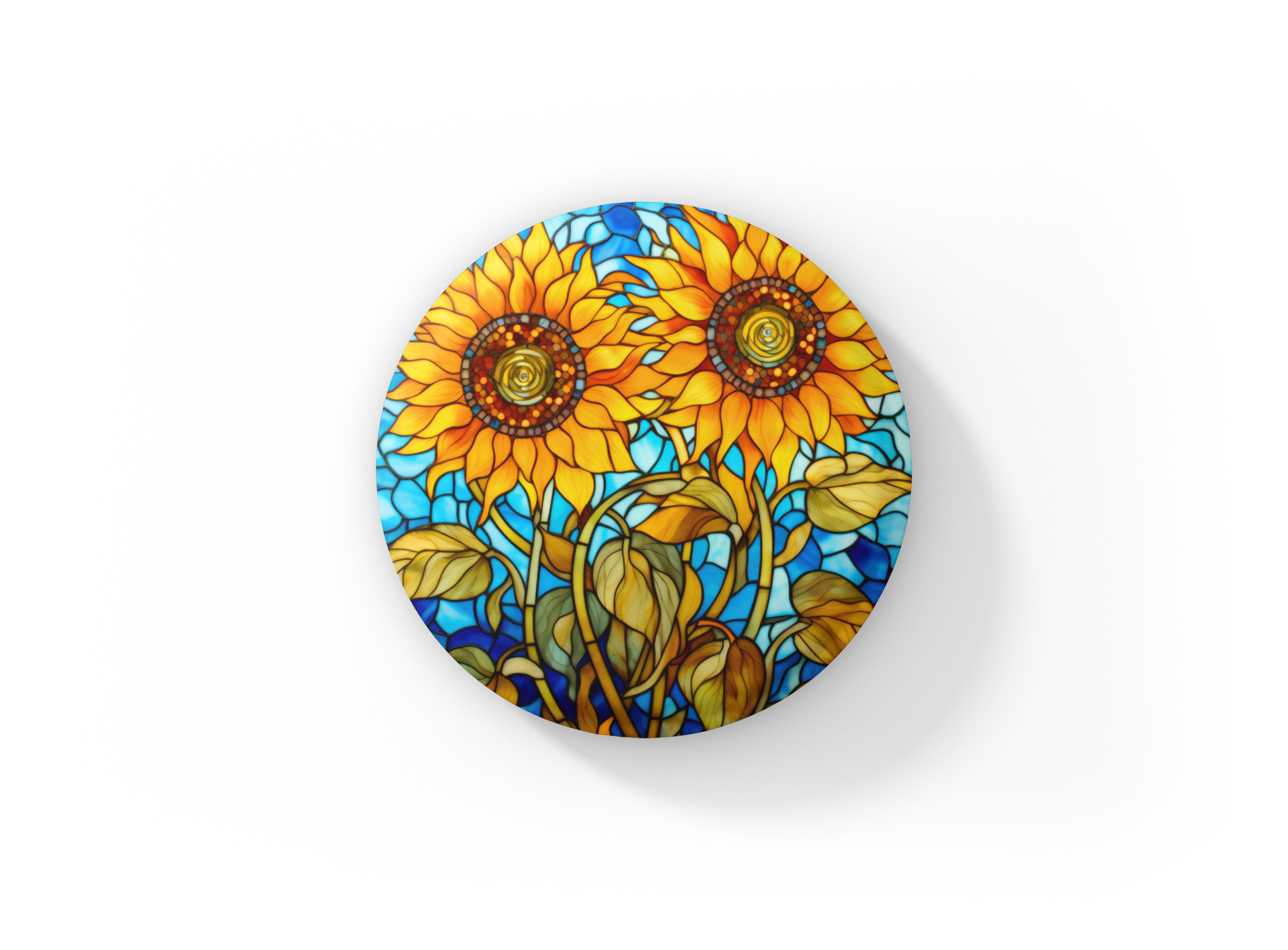 Stained Glass Sunflower Pin Back Button, Magnet, Keychain