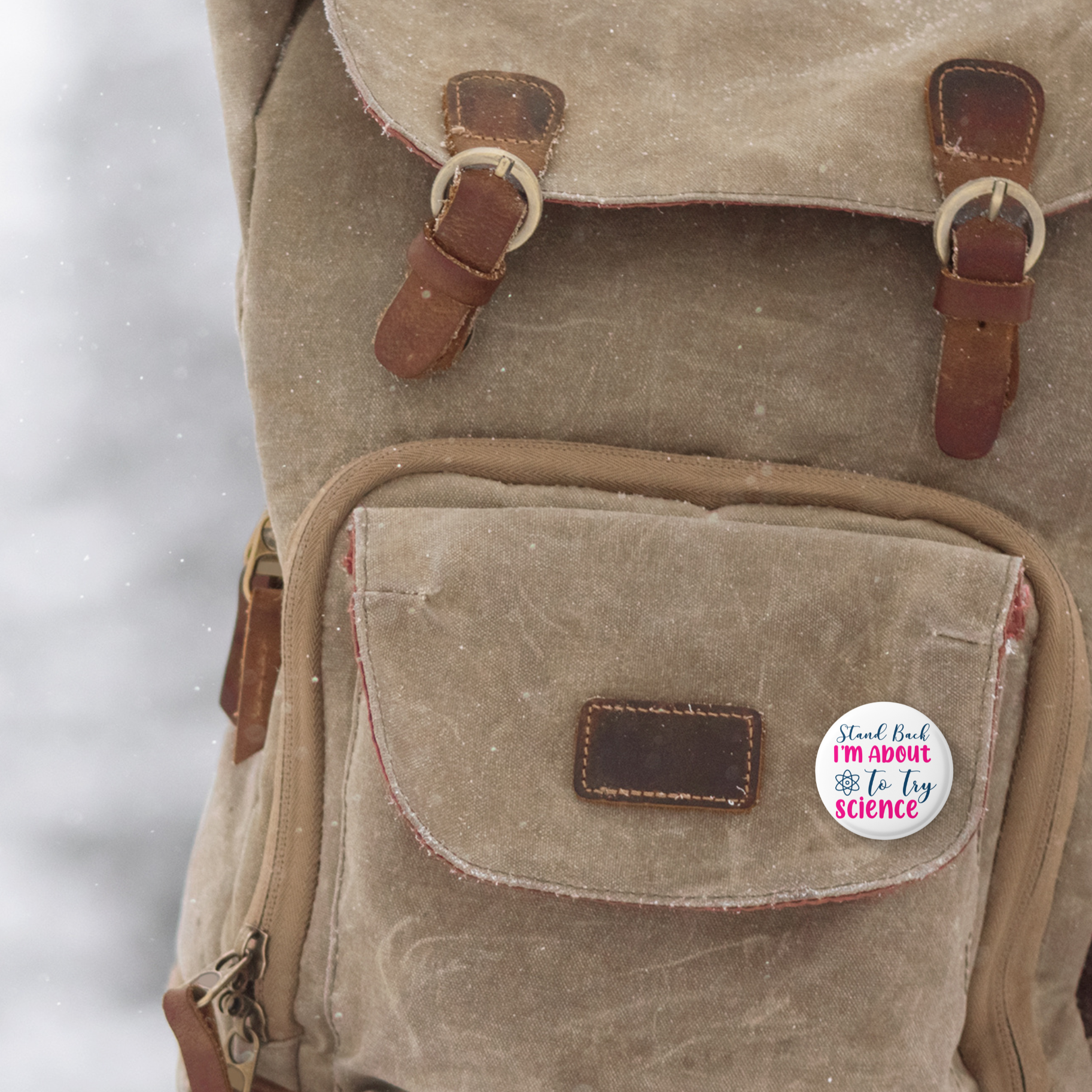 Stand Back I'm About To Try Science Pin Back Button, Magnet, Keychain
