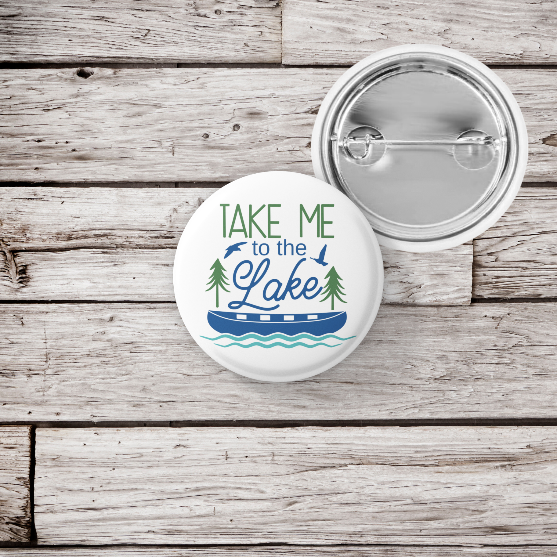 Take Me To The Lake Pin Back Button, Magnet, Keychain