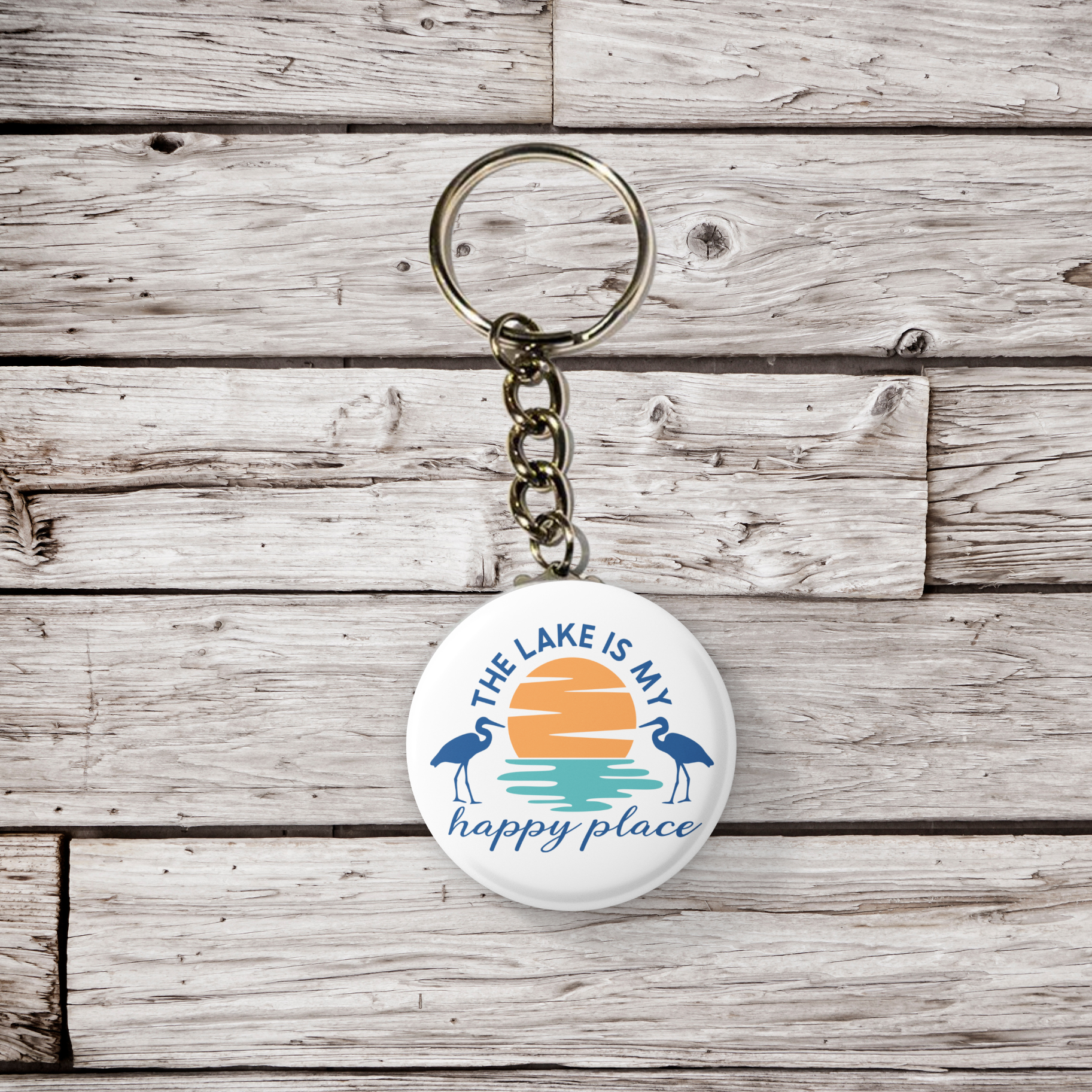 The Lake Is My Happy Place Pin Back Button, Magnet, Keychain