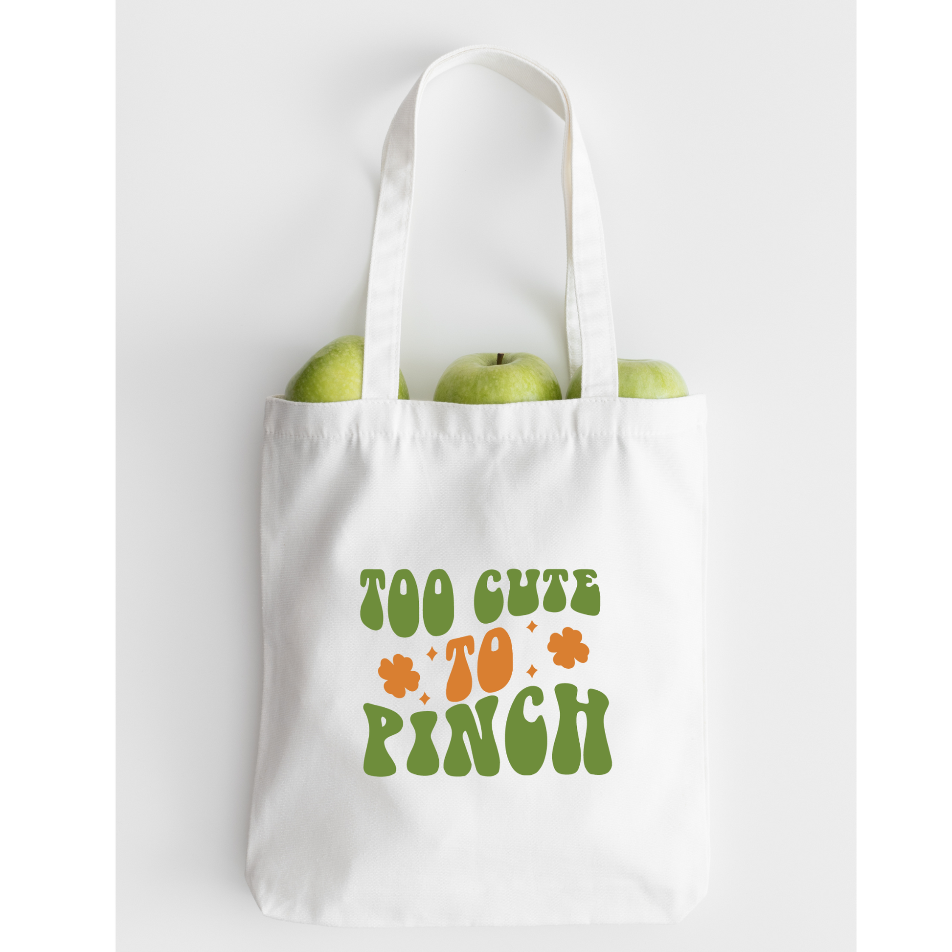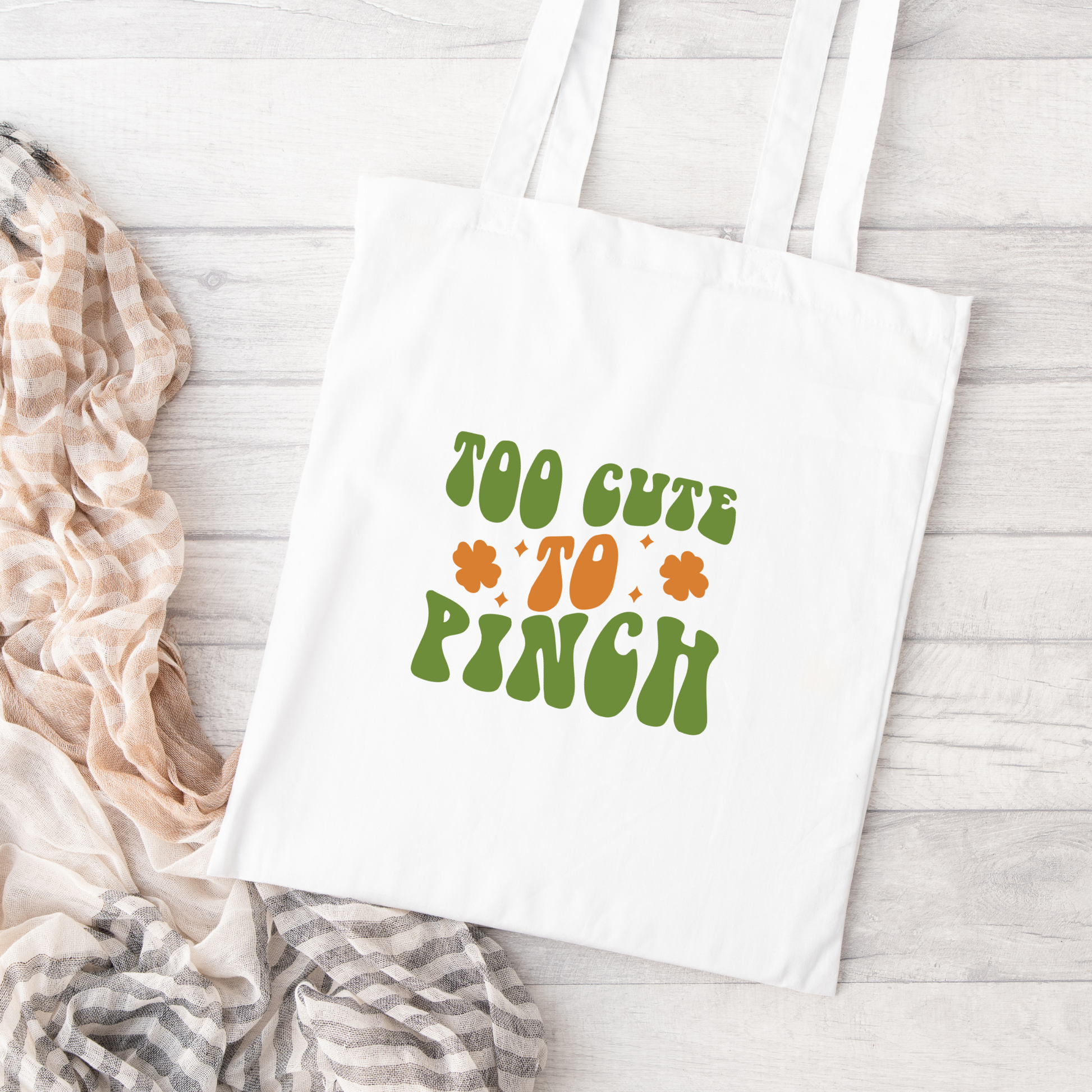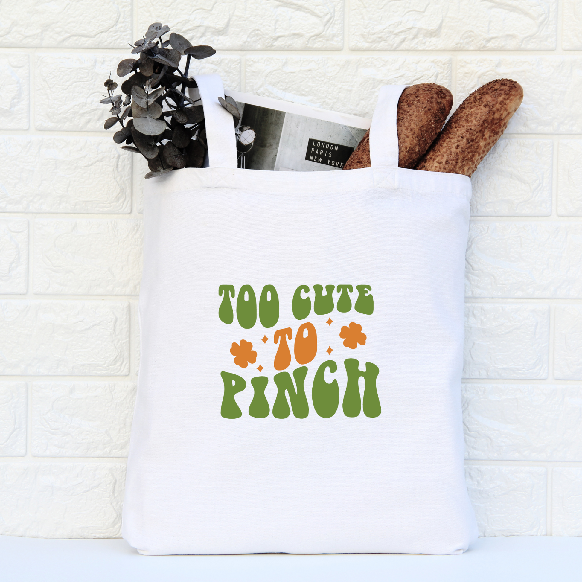 Too Cute To Pinch Tote Bag, Reusable Tote Bag, St Patricks Day Tote Bag