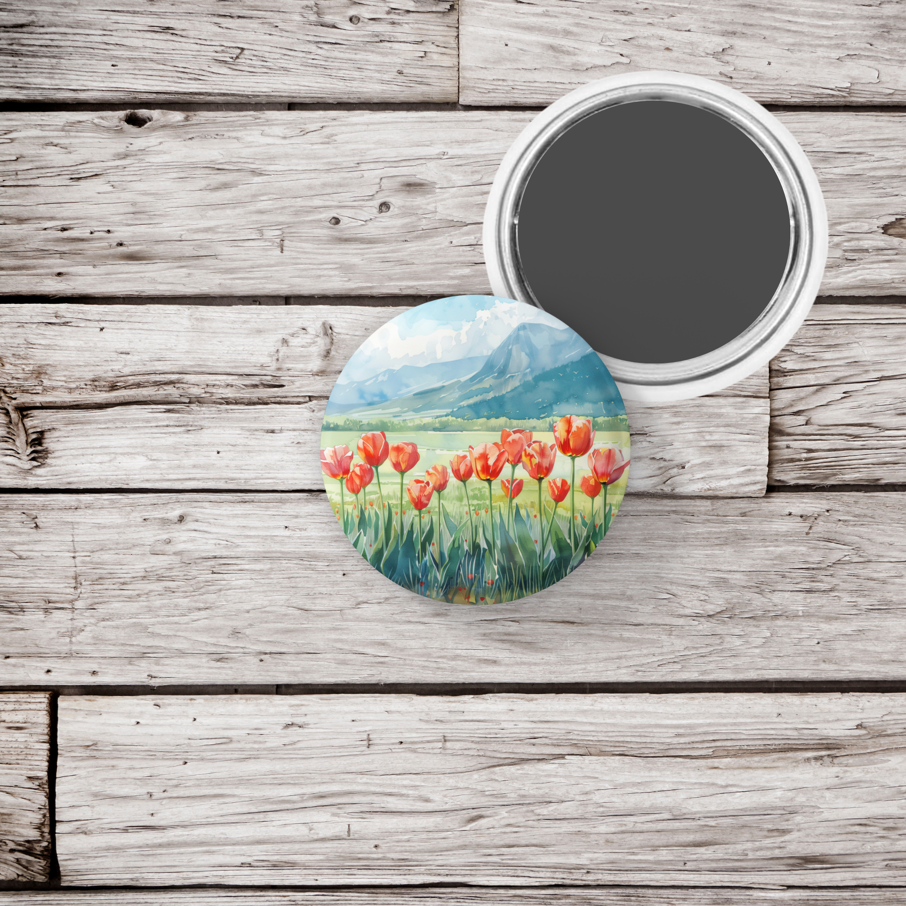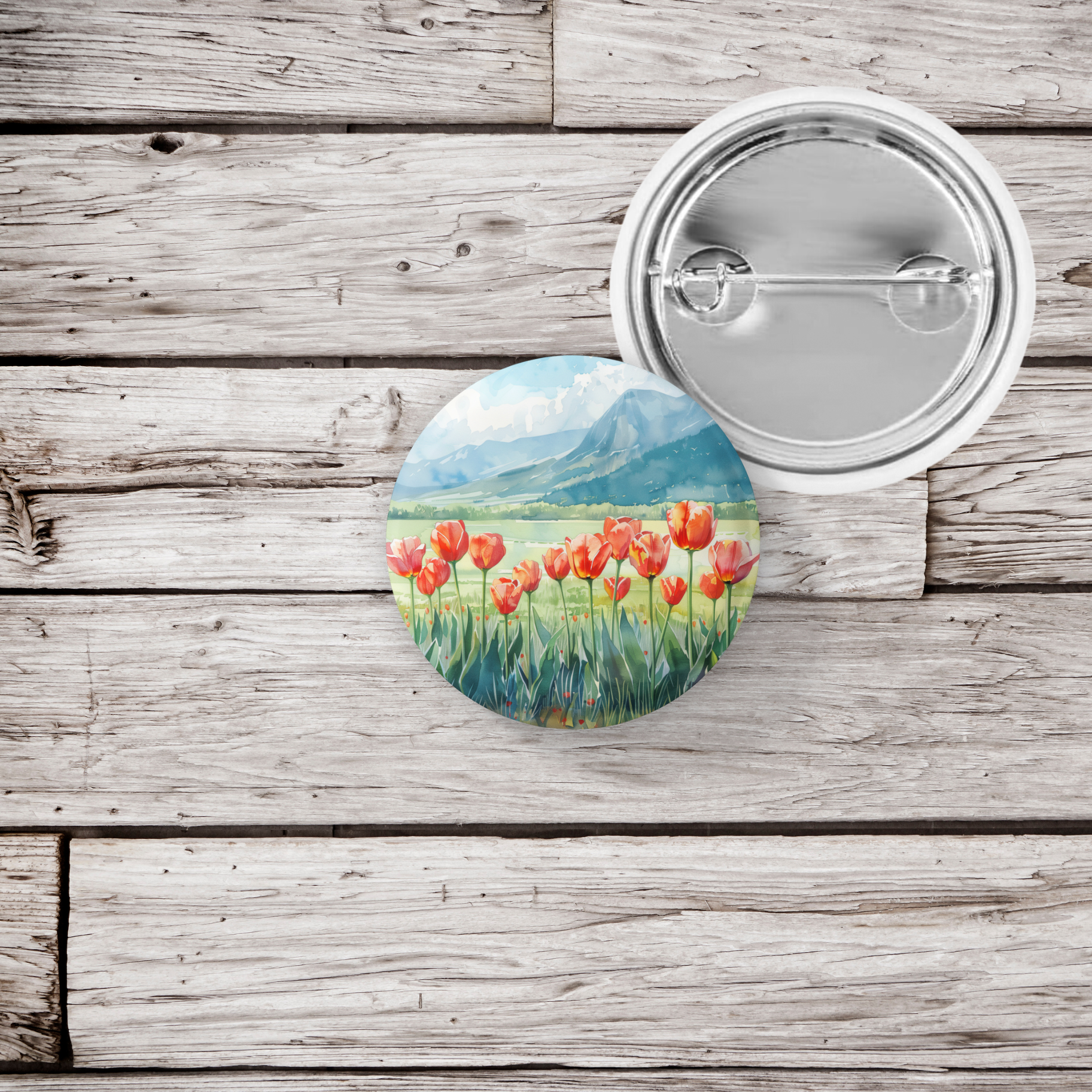 Tulip Mountain Pin Back Button, Magnet, Keychain