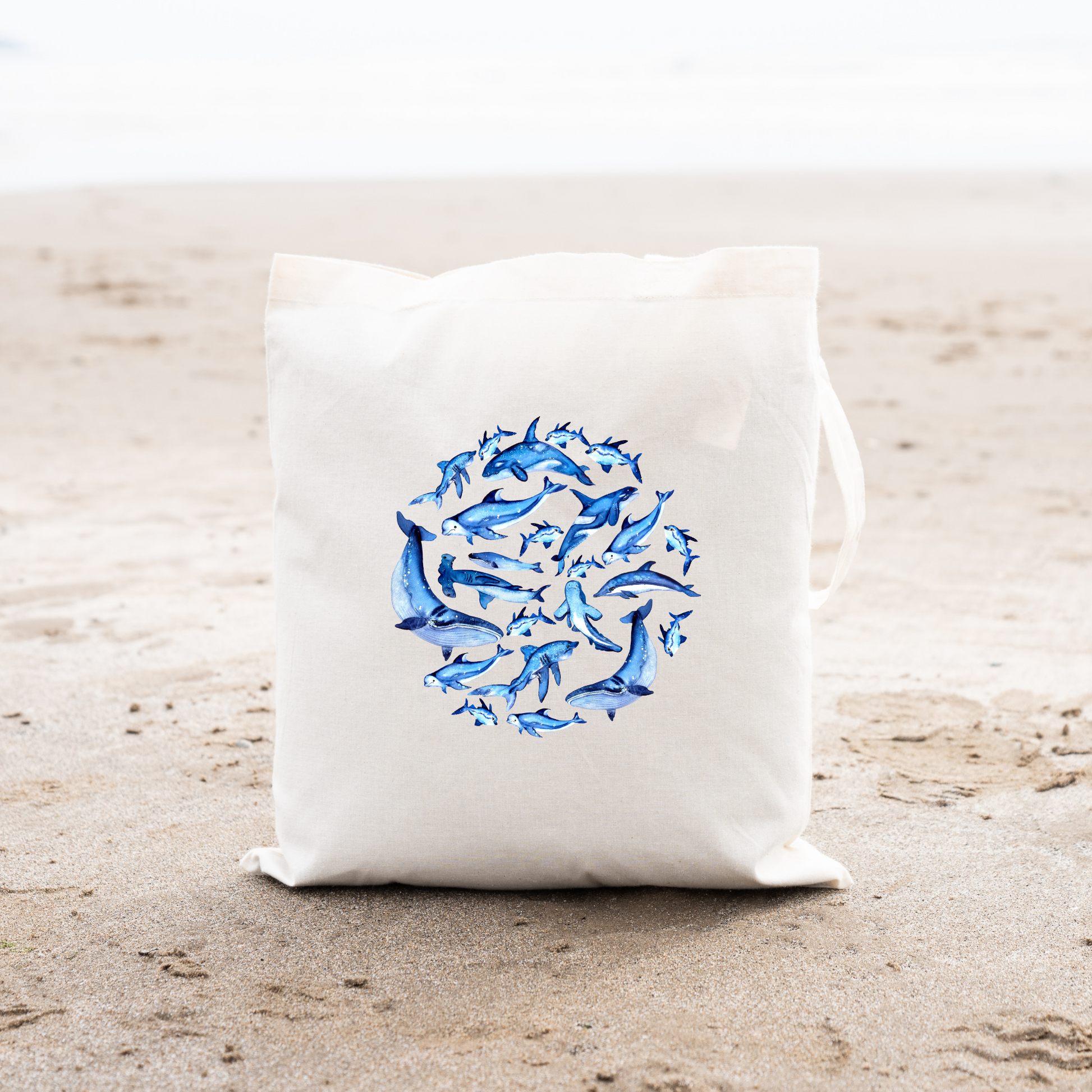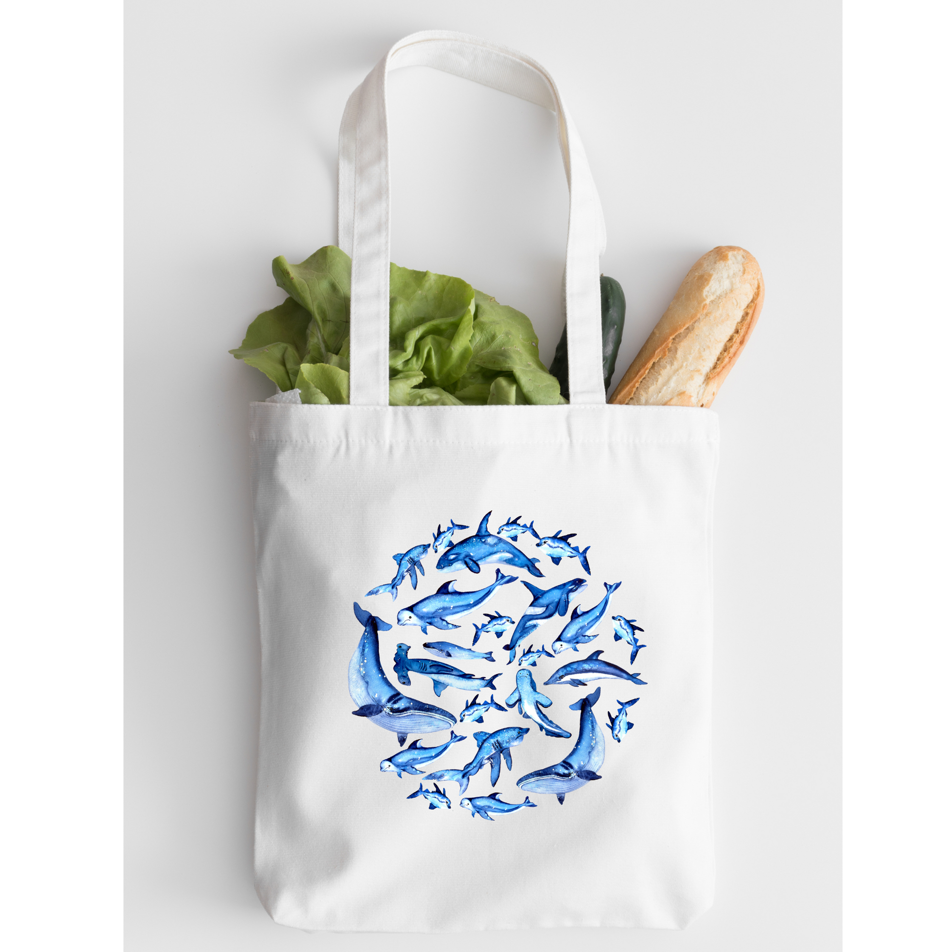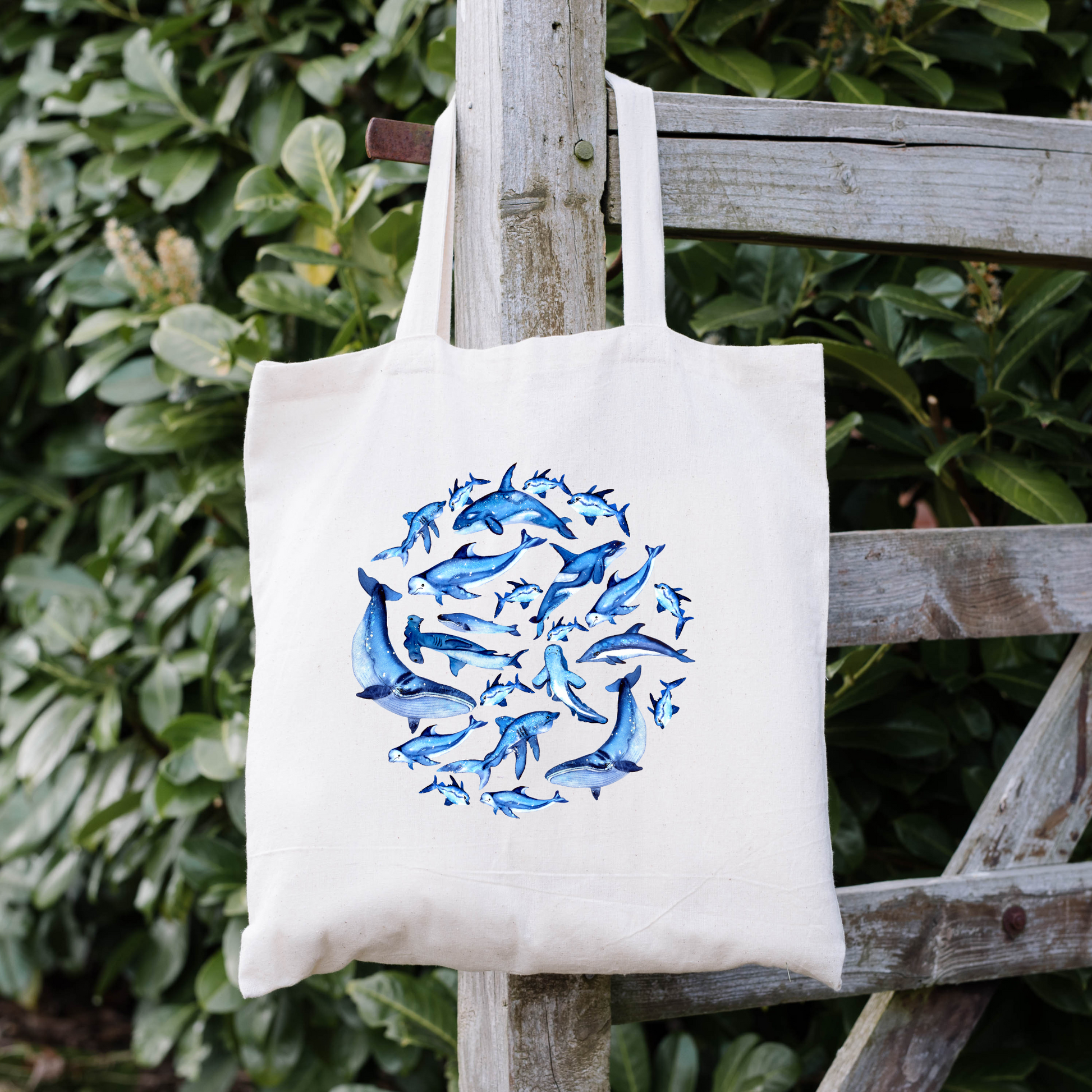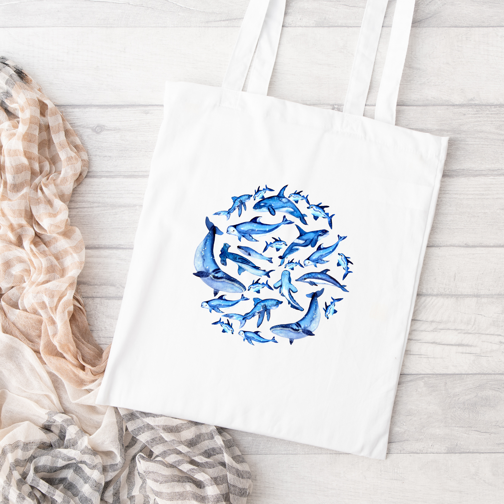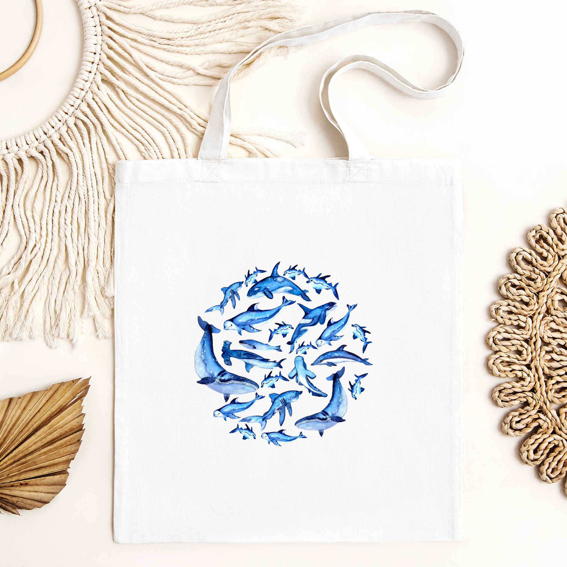 Whales And Sharks Tote Bag, Reusable Tote Bag, Beach Tote Bag