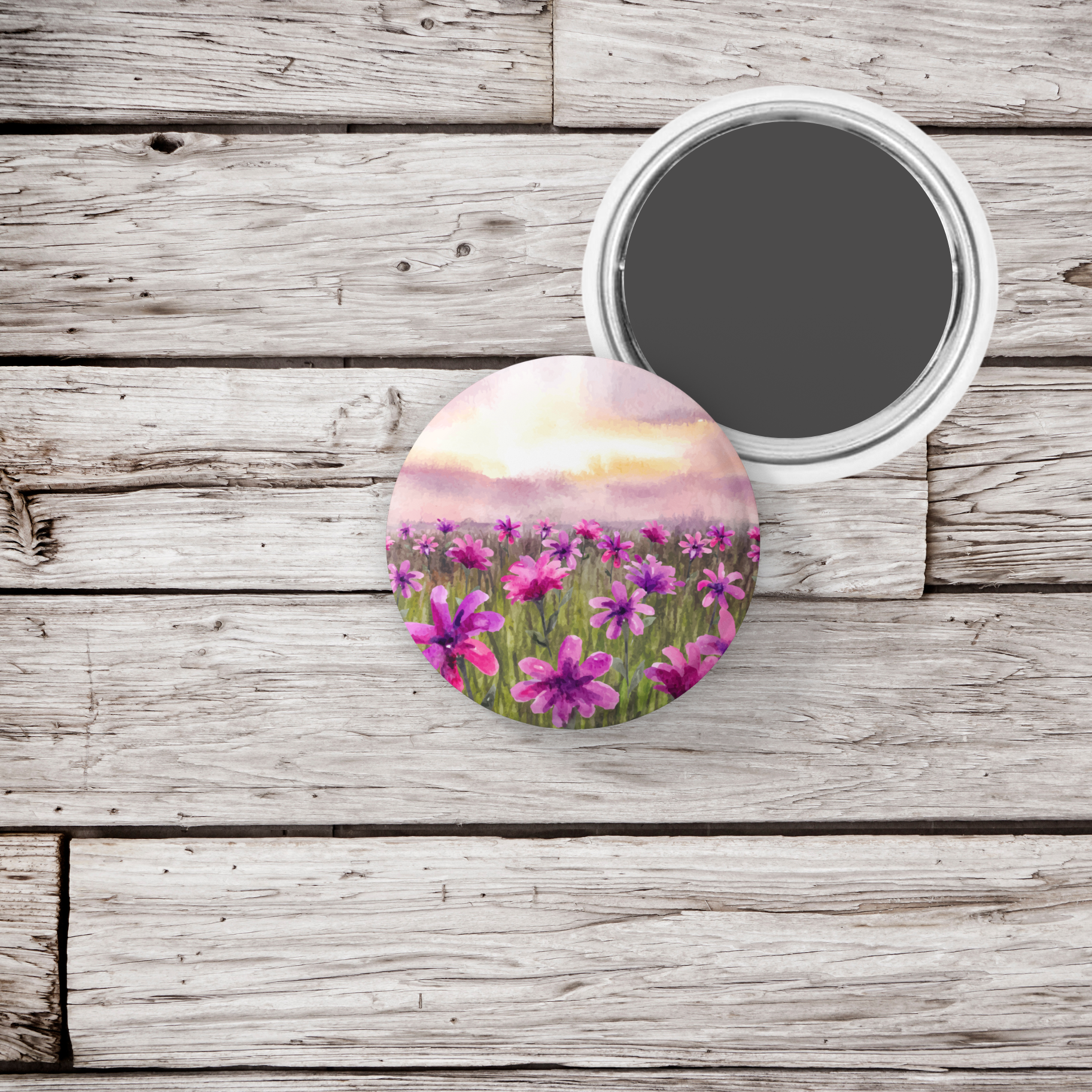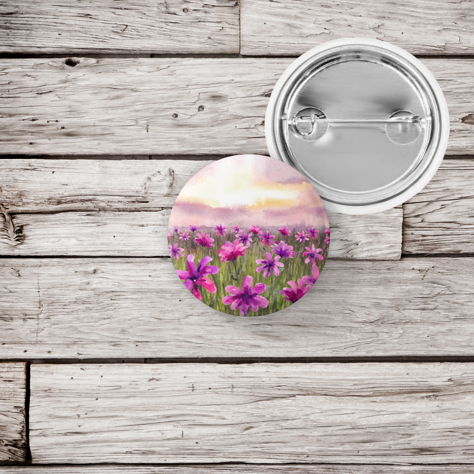 Wildflower Field 3 Pin Pin Back Button, Magnet, Keychain
