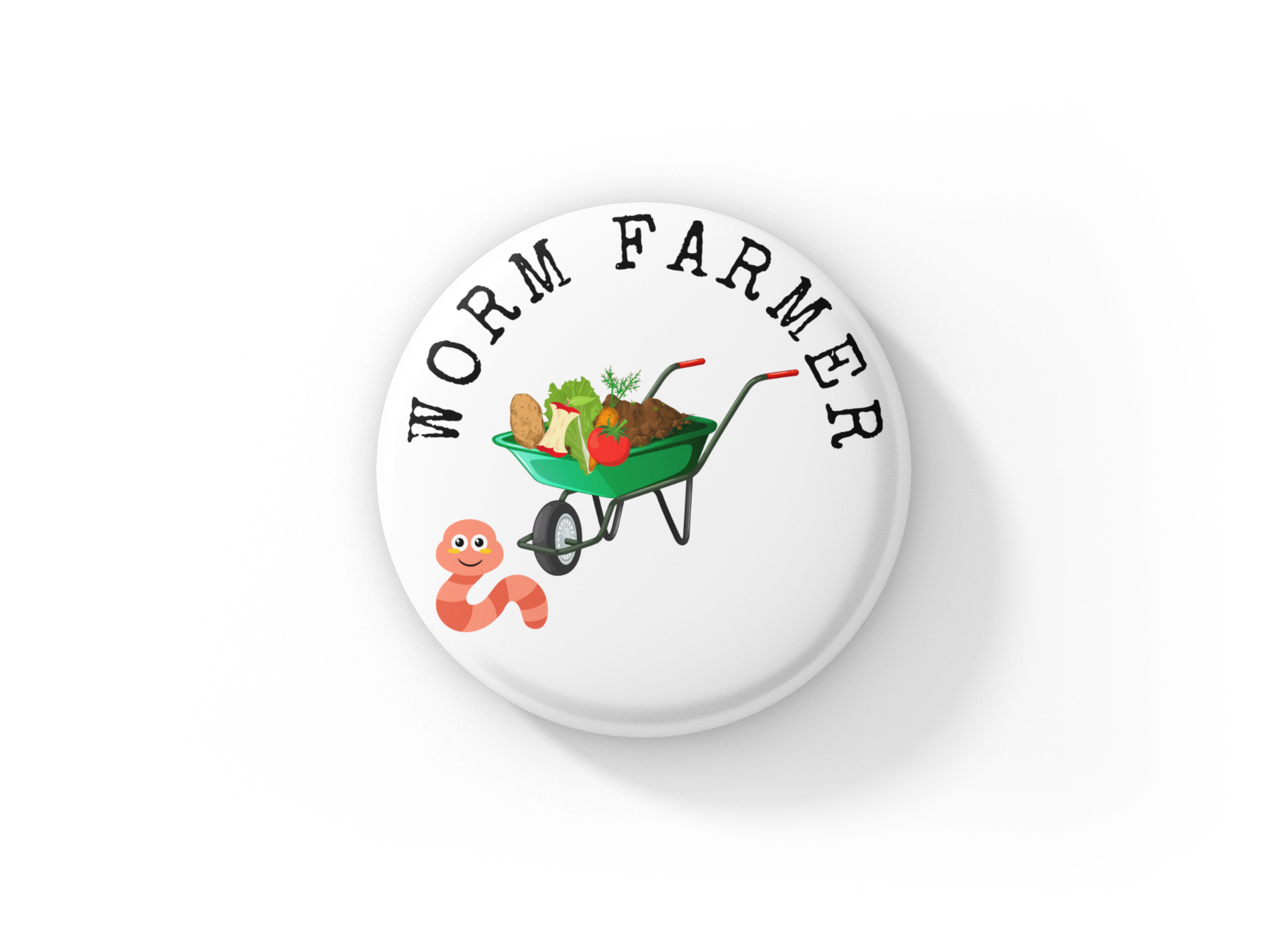 Worm Farmer Pin Back Button, Magnet, Keychain