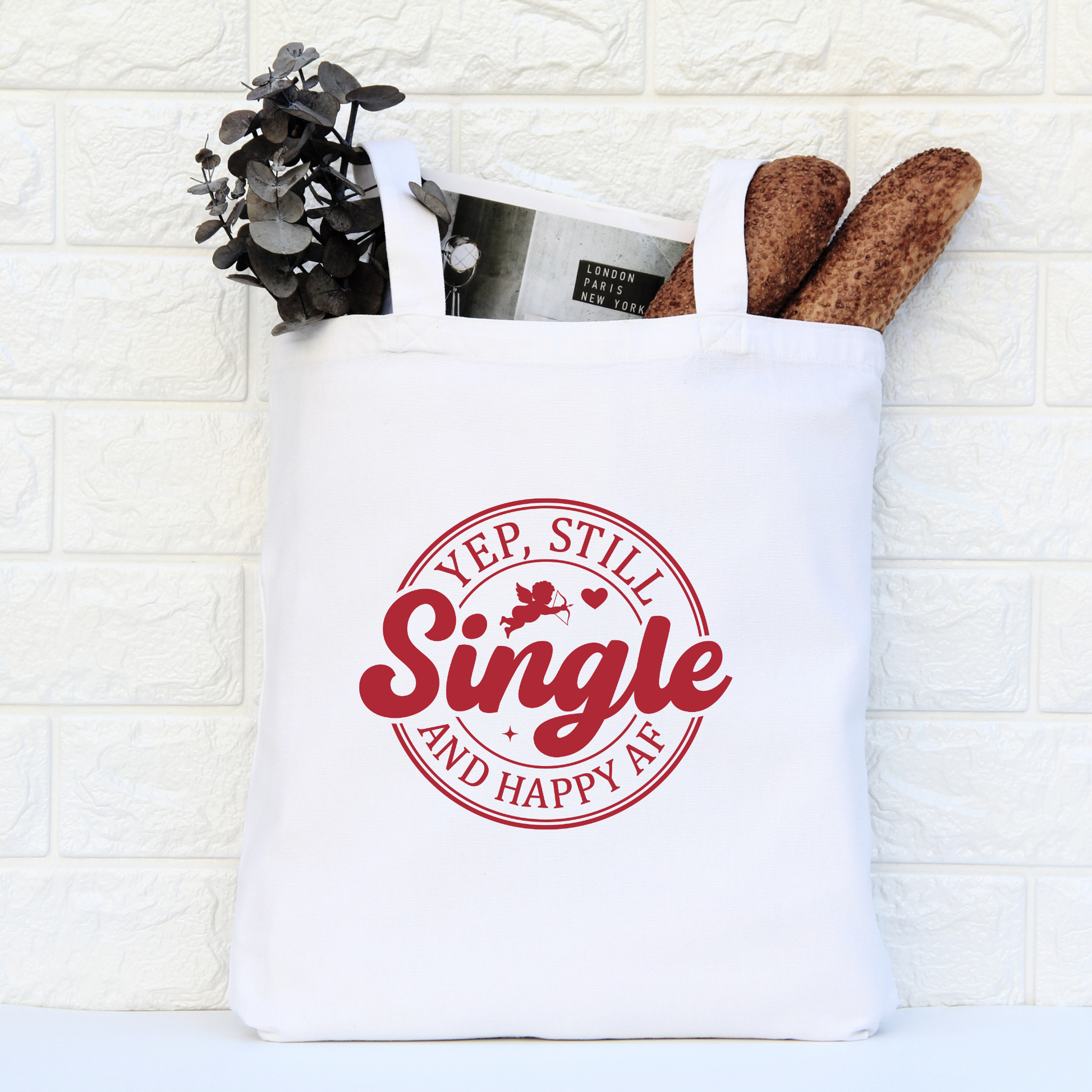 Yep Still Single And Happy AF Tote Bag, Reusable Tote Bag, Valentines Day Tote Bag