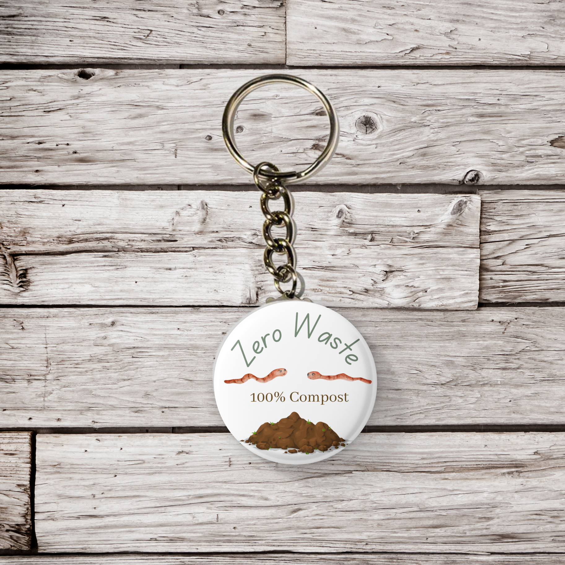 Zero Waste 100% Compost Pin Back Button, Magnet, Keychain